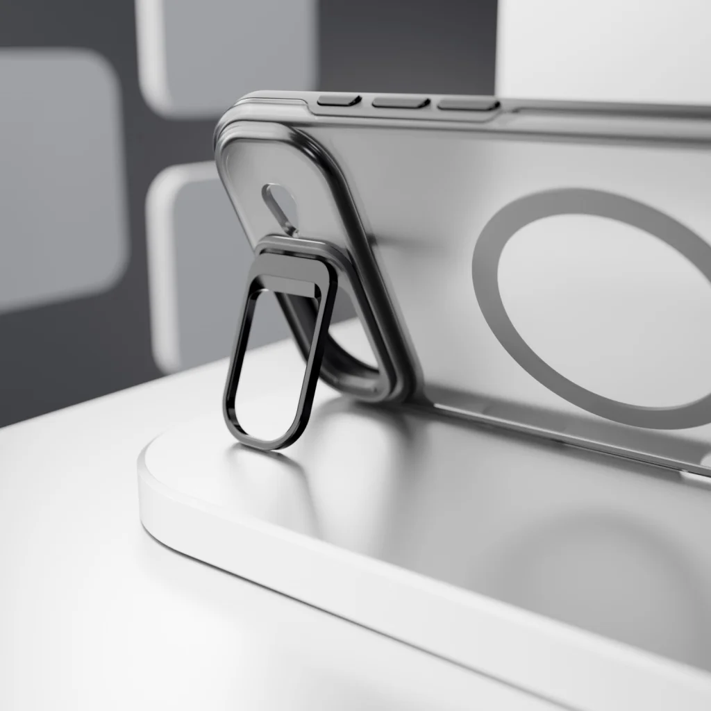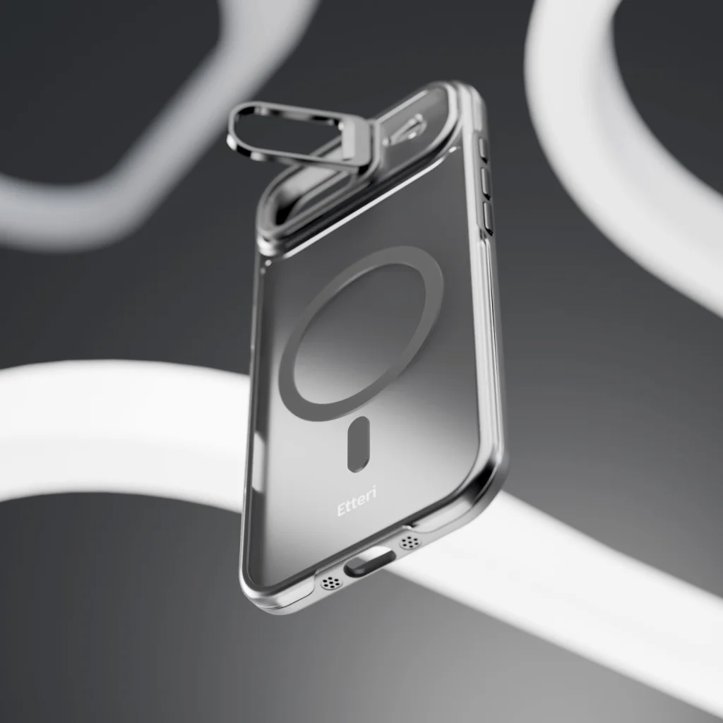 Rejtett funkciók a részletekben: A fém fényképezőgép sziget kettős célt szolgál: védi a lencséket a sérülésektől és praktikus állványként működik. Lehetővé teszi a telefon vízszintes elhelyezését – tökéletes videohívásokhoz, tartalom nézéséhez vagy távoli munkához.