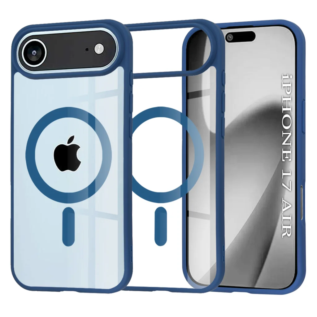- Átlátszó hátlap: Az átlátszó kialakításnak köszönhetően az iPhone 17 Air eredeti dizájnja és az Apple logó is látható marad, miközben a kék keret elegáns kontrasztot ad.