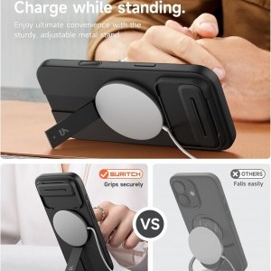 A tokba integrált, masszív és állítható fém állvány igazi szabadságot ad. Dőljön hátra, és élvezze a médiafogyasztást, videóhívásokat vagy egyszerűen csak böngésszen kényelmesen, anélkül, hogy a kezében kellene tartania telefonját. A kihajtható állvány különösen hasznos töltés közben is, lehetővé téve, hogy készüléke stabilan álljon, miközben feltöltődik.