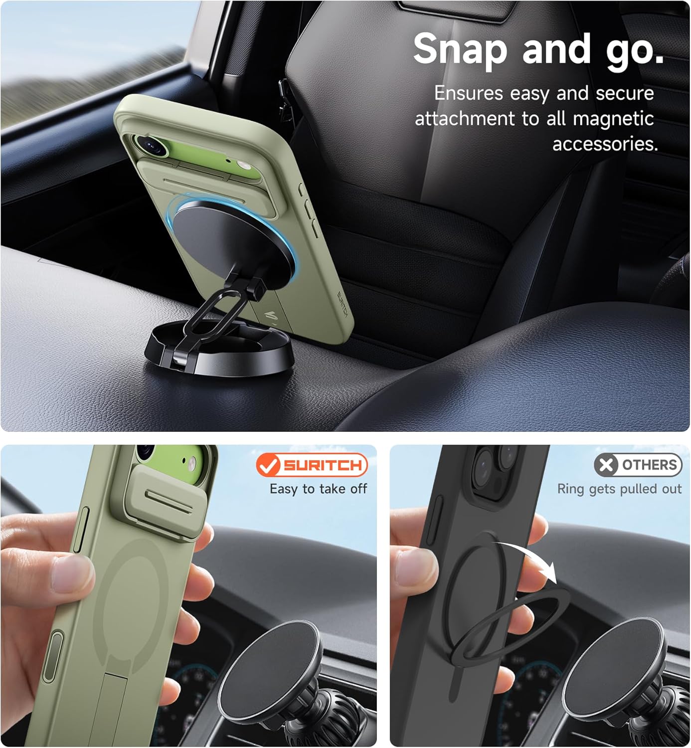 A Suritch tok célja, hogy újradefiniálja a telefonhasználati élményt a felsőfokú védelemmel és funkcionalitással. Válassza ezt a zöld, ütésálló tokot, amely nemcsak megóvja iPhone 17 Air készülékét a mindennapi behatásoktól, hanem elegáns és modern megjelenésével ki is emelkedik a tömegből, hogy Ön is kiemelkedően védve érezze magát.