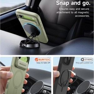 A tok ultra-erős mágnesekkel van beépítve, biztosítva a problémamentes MagSafe kompatibilitást. Töltsd telefonodat pillanatok alatt, könnyedén és gyorsan, anélkül, hogy a tokot el kellene távolítani. A tok biztonságosan illeszkedik vezeték nélküli töltőkhöz és mágneses pénztárcákhoz, valamint minden egyéb MagSafe kiegészítőhöz. A "Snap and Go" funkció lehetővé teszi, hogy egyszerűen és stabilan rögzítse készülékét mágneses autós tartókon vagy más kiegészítőkön, és ugyanolyan könnyedén le is vegye anélkül, hogy a tartó elengedné a telefont.