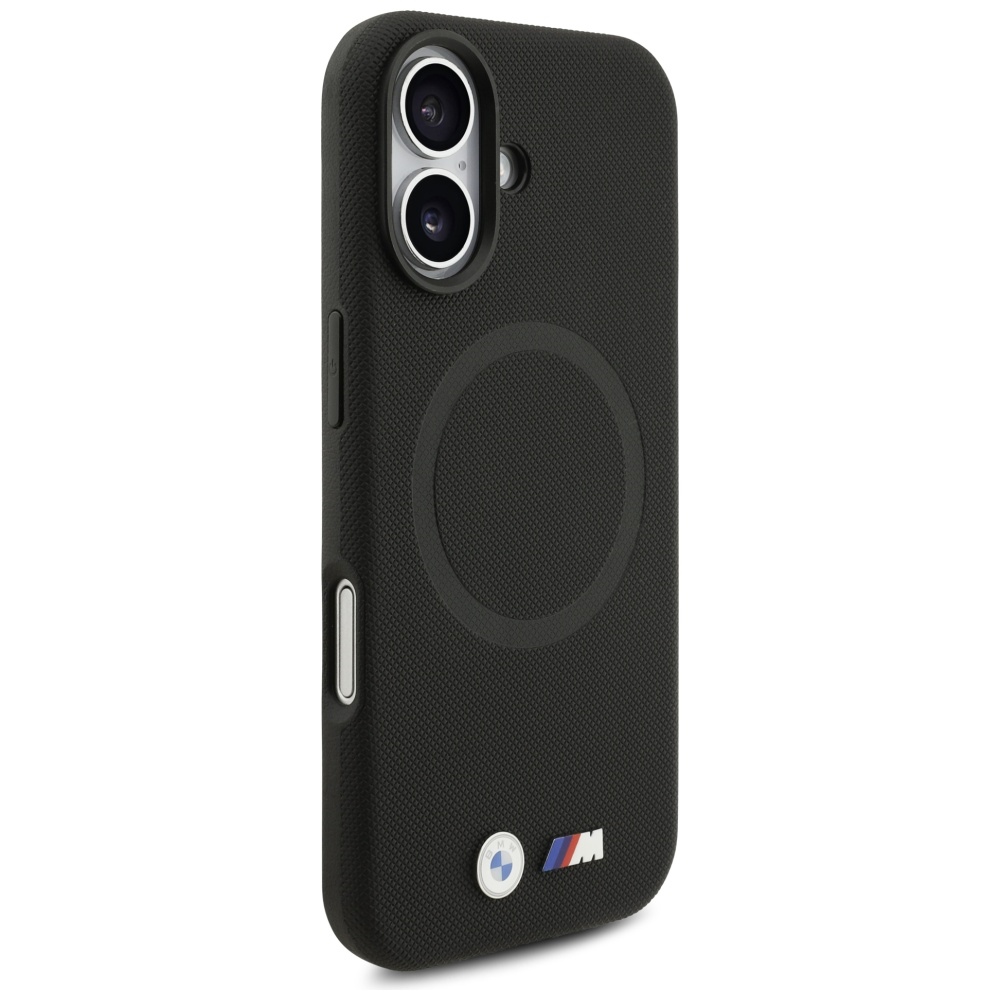 Az egyedi kialakítás és kiváló minőség jellemzi a BMW M FW Metal Logo tokot, amely a tartósságot és sportos jelleget ötvözi. Magas minőségű öko-bőrből készült, finom felületű textúrával, amely biztonságos fogást és elegáns megjelenést biztosít. A hátlapon található fém BMW M logó kiemeli a kollekció hitelességét és presztízsét. A tok teljes mértékben kompatibilis a MagSafe rendszerrel, hatékony védelmet nyújt a leejtés ellen, és vékony profillal rendelkezik, amely tökéletesen illeszkedik a telefonhoz. A fekete kamera keret és gombok modern és koherens megjelenést biztosítanak.