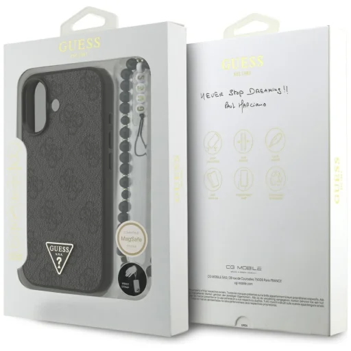A Guess 4G Pánt Háromszög Logó MagSafe tok egy exkluzív védőtok sorozat, amely a kiváló funkcionalitást stílusos, egyedi dizájnnal ötvözi. Ez a kollekció azok számára készült, akik nemcsak a telefonjuk biztonságát, hanem elegáns megjelenését is értékelik. Ez a tökéletes választás minden MagSafe technológiát használó eszköz felhasználó számára. Az exkluzív védőtok a neves Guess márkától az elegancia és a stílus kombinációját jelenti a legmagasabb szinten. A tok kiváló minőségű öko-bőrből készült, legendás 4G mintával nyomtatva. A tok alján a Guess logó található, amely finoman hangsúlyozza a tok presztízsét. Ez a funkcionalitás és elegáns dizájn tökéletes kombinációja, amely biztosítja, hogy telefonod ne csak jól védett legyen, hanem divatos kiegészítővé is váljon. Továbbá egy stílusos gyöngy kulcstartóval egészül ki, amely tökéletesen illeszkedik a tok színvilágához. A gyöngyökön lévő betűk a „GUESS” szót formálják, így ez a kiegészítő nemcsak praktikus, hanem rendkívül divatos is.