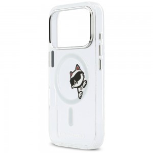 Exkluzív védőtok a neves Karl Lagerfeld márkától, amely eleganciát és egyedülálló stílust ötvöz. A tok PC és TPU anyagokból készül, így biztosítva a tartósságot és a telefon hatékony védelmét. A hátlapot a Choupette macska képe díszíti, amely a MagSafe gyűrű mögül tekint ki. Az egész dizájnt alumínium részletek – a kamera keret és gombok – egészítik ki, amelyek növelik a tartósságot és elegáns karaktert adnak a toknak. Ez a funkcionalitás és a divatos dizájn tökéletes kombinációja, aminek köszönhetően a telefon nemcsak védett lesz, hanem stílusos kiegészítővé is válik.