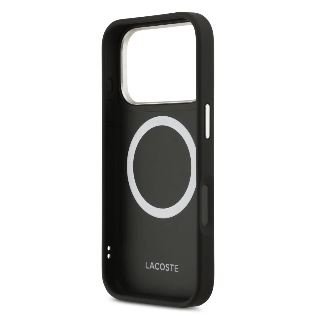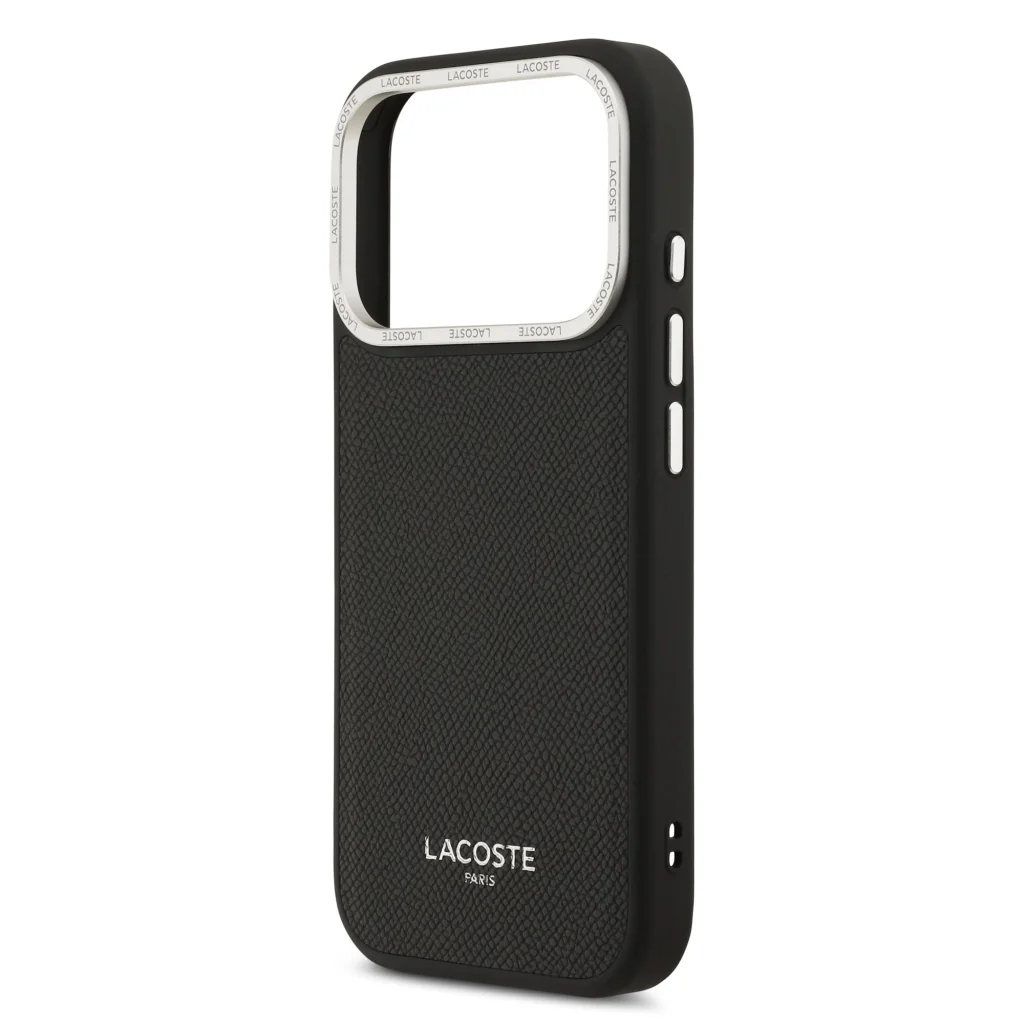 Remek részlet a hátlapi kamera keretén ismétlődő Lacoste felirat, amely egyedi karaktert ad a toknak.