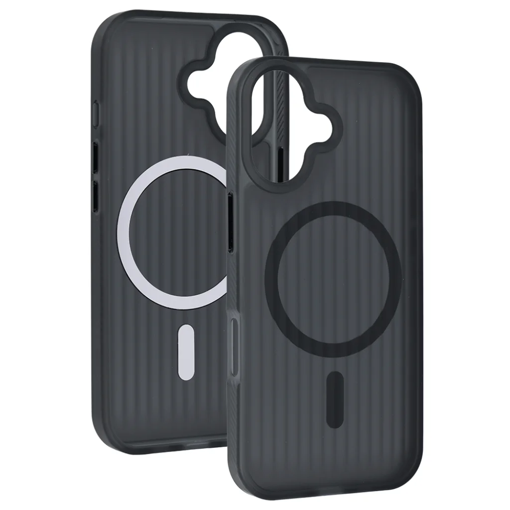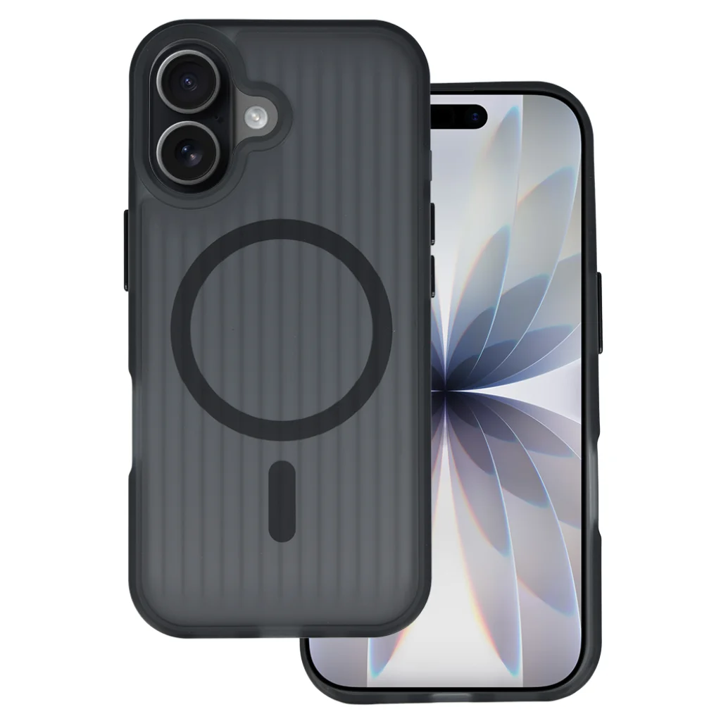 Tel Protect Twist MagSafe tok – félig áttetsző tok hullámos textúrával Egy modern hibrid tok, amely rugalmas TPU oldalakat és tartós PC hátlapot kombinál. A konstrukció teljesen félig áttetsző (mind a keret, mind a hátlap), miközben a hátoldalon lévő hullámos textúra javítja a fogást és egyedi megjelenést kölcsönöz a toknak. A beépített mágneses gyűrű biztosítja a kompatibilitást a MagSafe kiegészítőkkel.