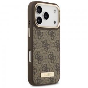 Lenyűgöző stílus és védelem: iPhone 17 Pro Guess 4G Logo Plate MagSafe barna tok
