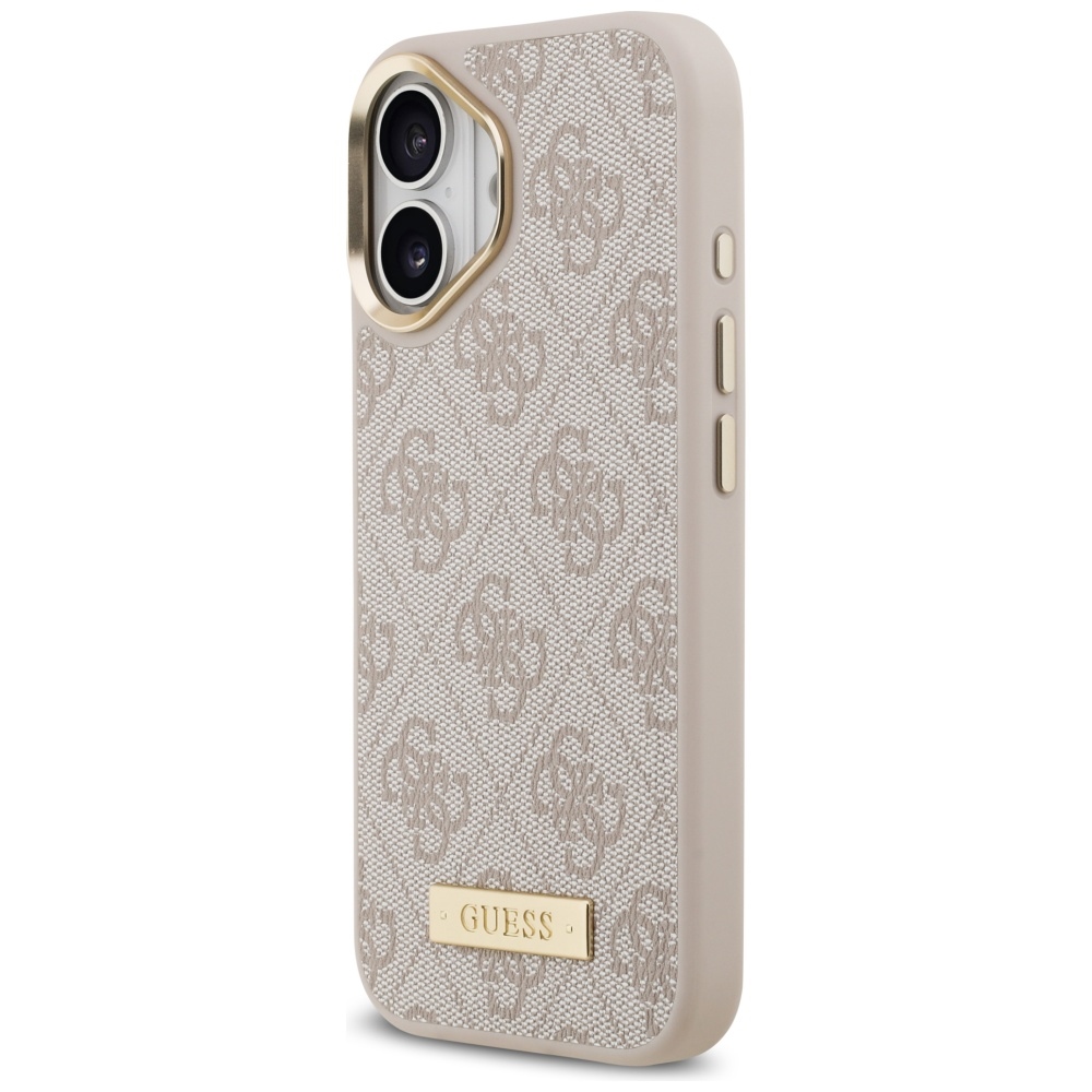- Elegáns, halvány rózsaszín/bézs-rózsaszín árnyalatú design, ikonikus Guess 4G logóval.