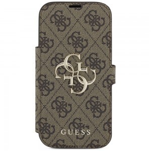 iPhone 17 Pro Guess 4G Metal Logo könyv tok barna