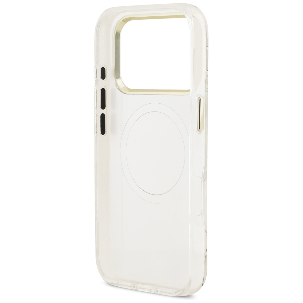 iPhone 17 Pro Guess IML Glitter Flowers Triangle MagSafe tok Fehér