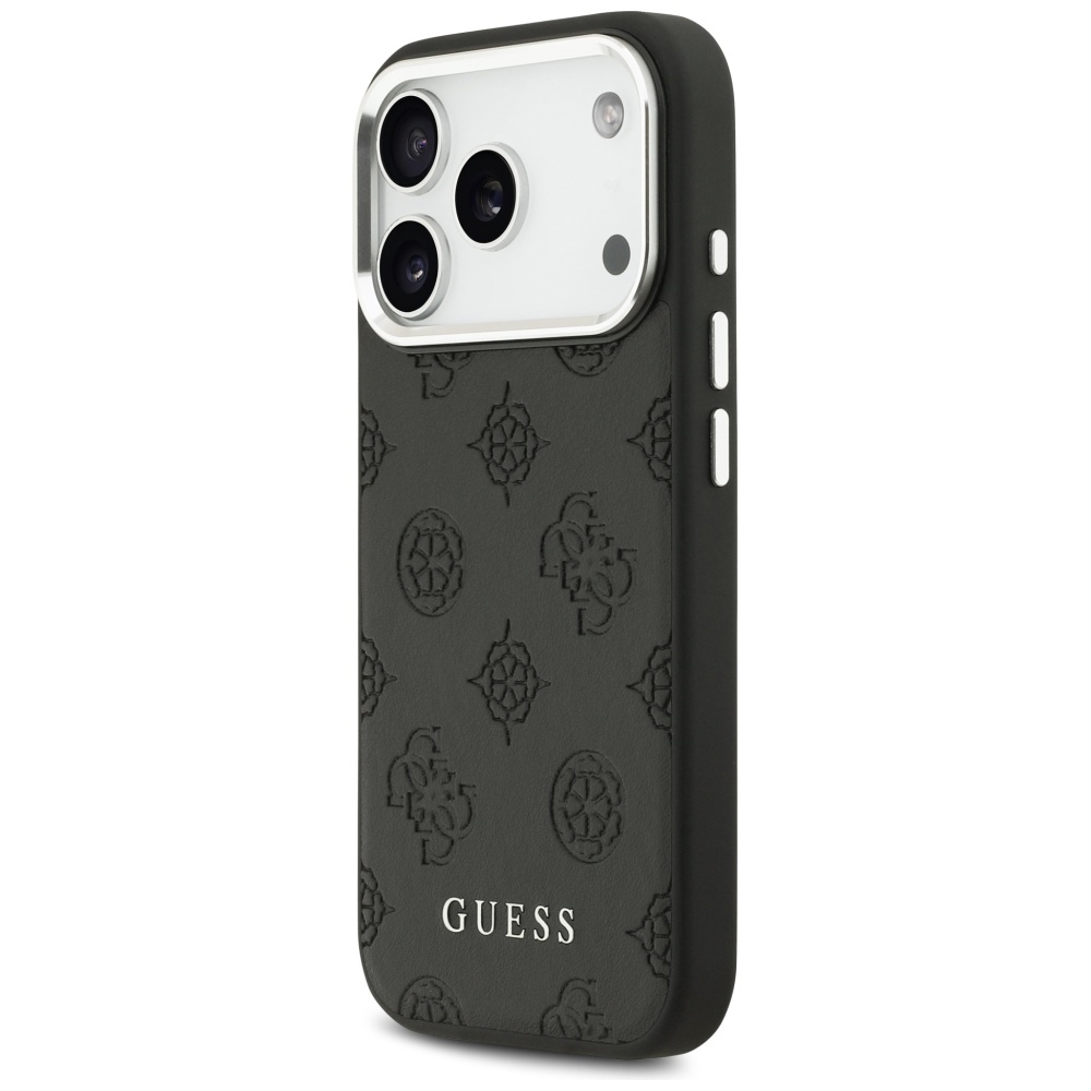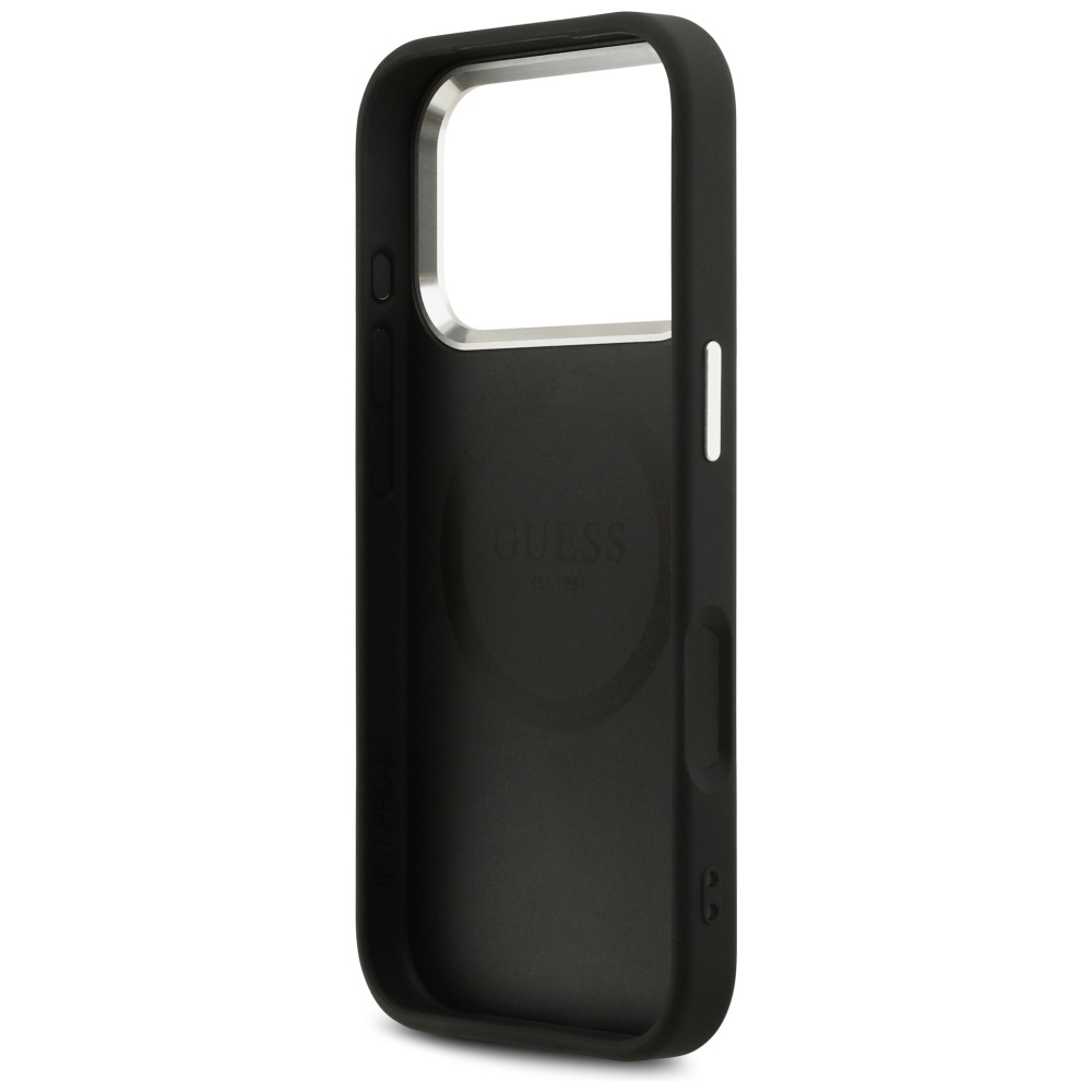 iPhone 17 Pro Fekete Guess Peony Hot Stamp Script MagSafe tok