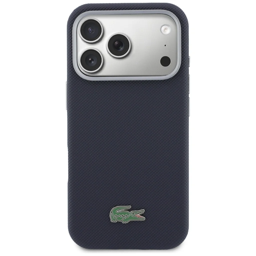 Az érdekes textúrával rendelkező tok nemcsak szemet gyönyörködtető, hanem kellemes tapintási élményt is nyújt. A finom felületi kialakítás nemcsak esztétikus, hanem funkcionális is, biztos fogást és kényelmes használatot kínál. A kollekciót a Lacoste ikonikus krokodiljának fémképe díszíti, amely tökéletesen visszaadja a márka szellemiségét, ötvözve az eleganciát a sportos stílussal.