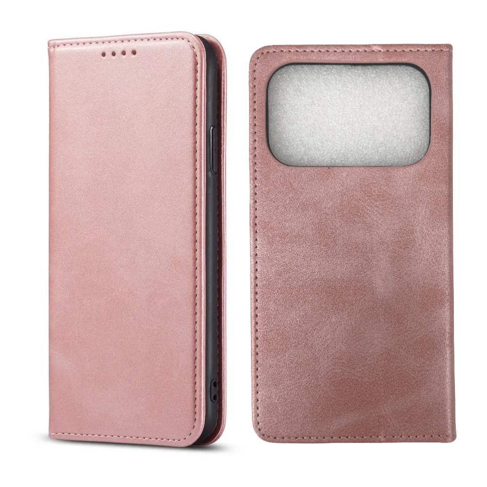 iPhone 17 Pro mágneses PU bőr fliptok kártyatartóval pánt nélküli rózsaszín Alphajack