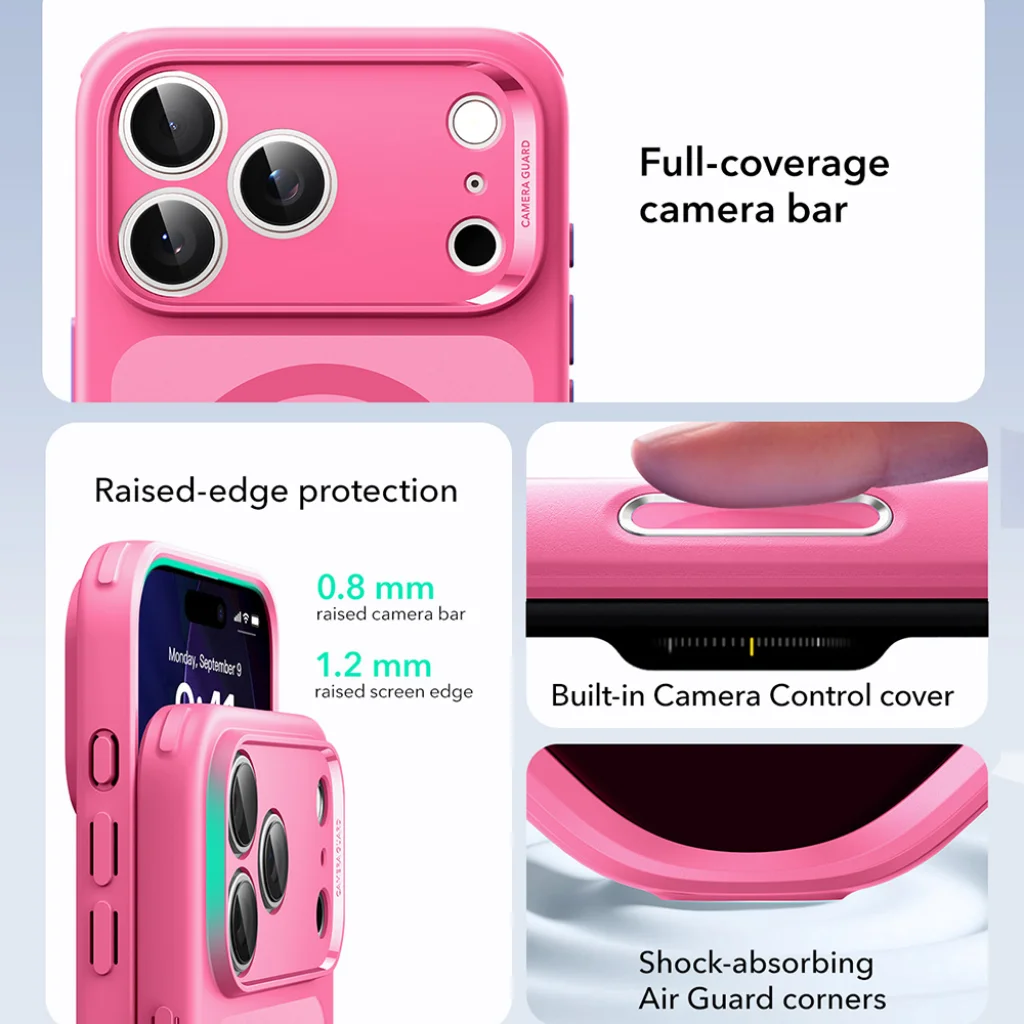 Válassza az ESR Klasszikus Hibrid HaloLock Matt Rózsaszín tokot, és biztosítsa iPhone 17 Pro készülékének a tökéletes egyensúlyt a stílus, a kompromisszumok nélküli védelem és a MagSafe funkcionalitás között!