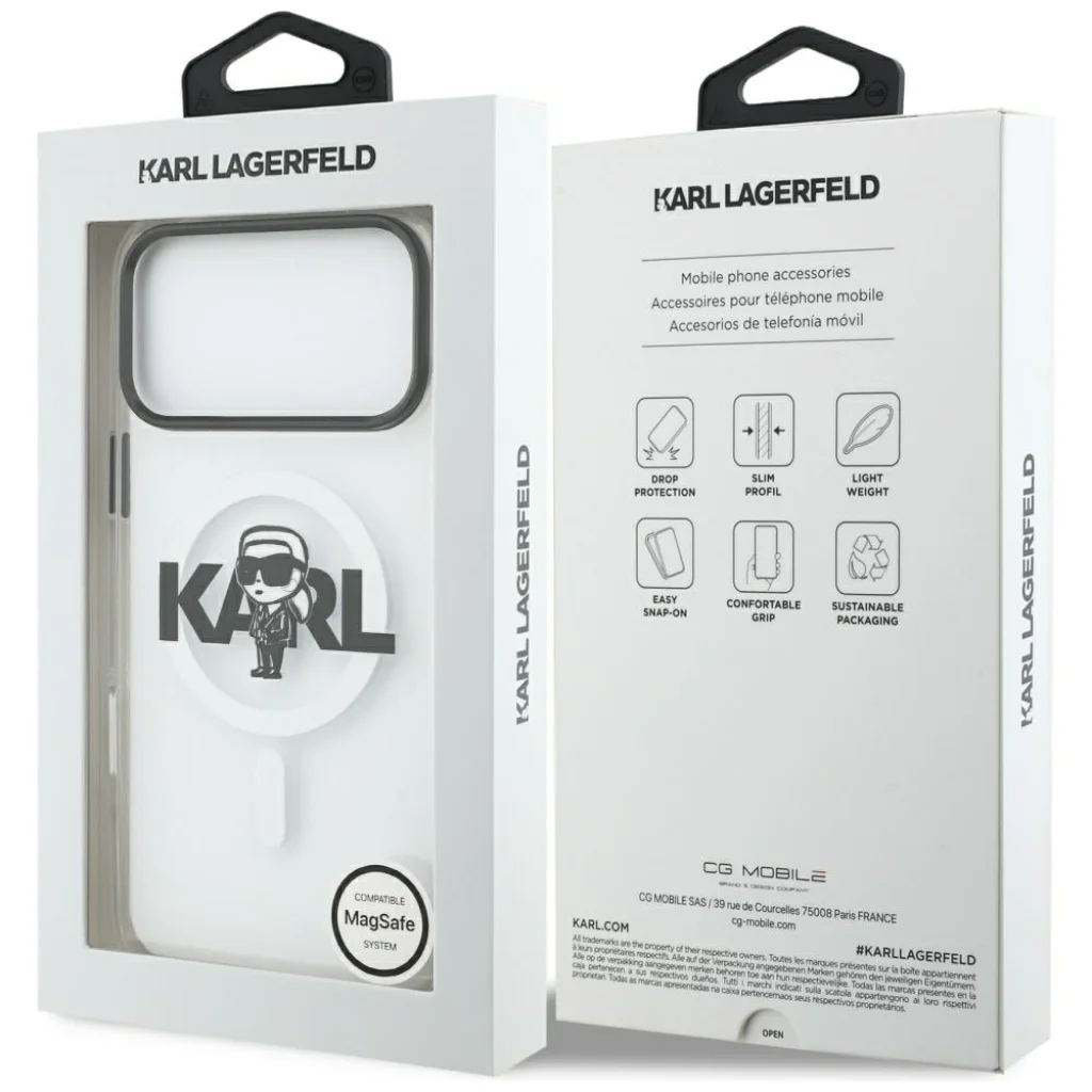 Válassza a Karl Lagerfeld IML MagSafe Sketch Logo átlátszó tokot, és élvezze az elegancia, a megbízható védelem és a modern technológia tökéletes harmóniáját iPhone 17 Pro Max készülékén!