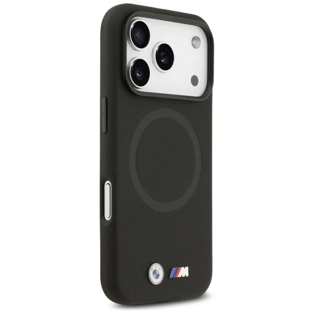 iPhone 17 Pro Max BMW M FW fém logós MagSafe tok, fekete
