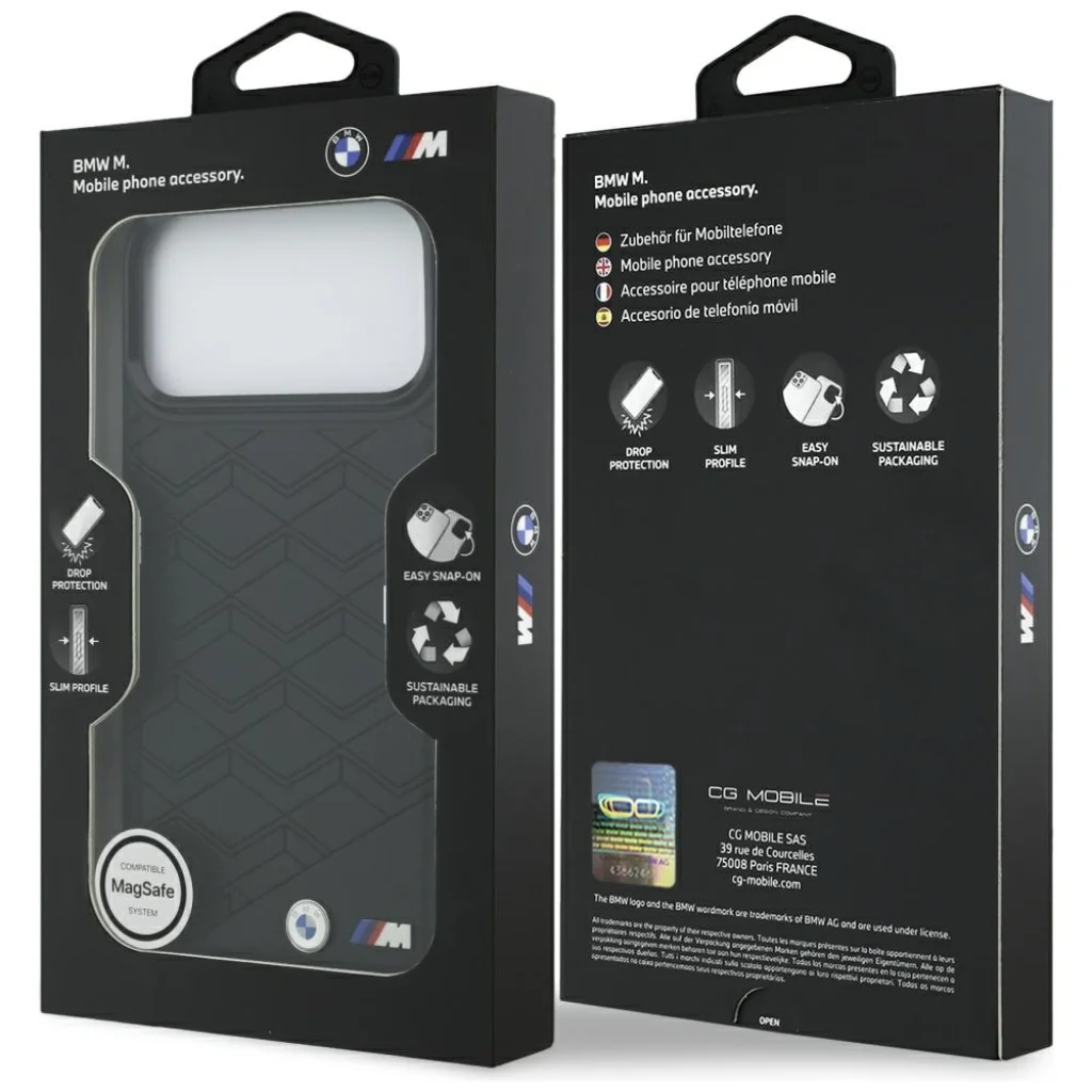 A BMW M Shape Logo MagSafe tok egy exkluzív tok, amelyet a világ egyik legnépszerűbb autómárkája, a BMW támogat. Ez a tok tökéletes választás minden MagSafe technológiával rendelkező készüléktulajdonos számára. A tok magas minőségű öko-bőrből készült, és a kollekció ismertetőjegye a finom geometriai dombornyomás, valamint a BMW fém logó, amely a termék hitelességét és a csúcsminőséget szimbolizálja. A tok tartós szerkezete és tökéletes illeszkedése biztosítja az erős fogást és növeli az esések elleni védelmet. A hátlap polikarbonáttal van megerősítve, ami megvédi a készüléket a karcolásoktól és extra párnázottságot nyújt. Enyhén megemelt szélei védelmet nyújtanak a képernyő és a kamera lencsék karcolódásának elkerülése érdekében, míg a rugalmas és puha oldalak gyors és egyszerű telepítést tesznek lehetővé. A tok a szükséges kivágásokkal és integrált gombfedőkkel van ellátva. A beépített mágnesgyűrű kompatibilis a MagSafe vezeték nélküli töltővel, amely biztosítja a gyors és egyszerű töltést. A beépített mágnesek tökéletesen igazodnak a felhasználó telefonjához, garantálva az iPhone szoros tapadását a MagSafe töltőhöz. A tokot a BMW márkaliszencia alapján gyártották.
