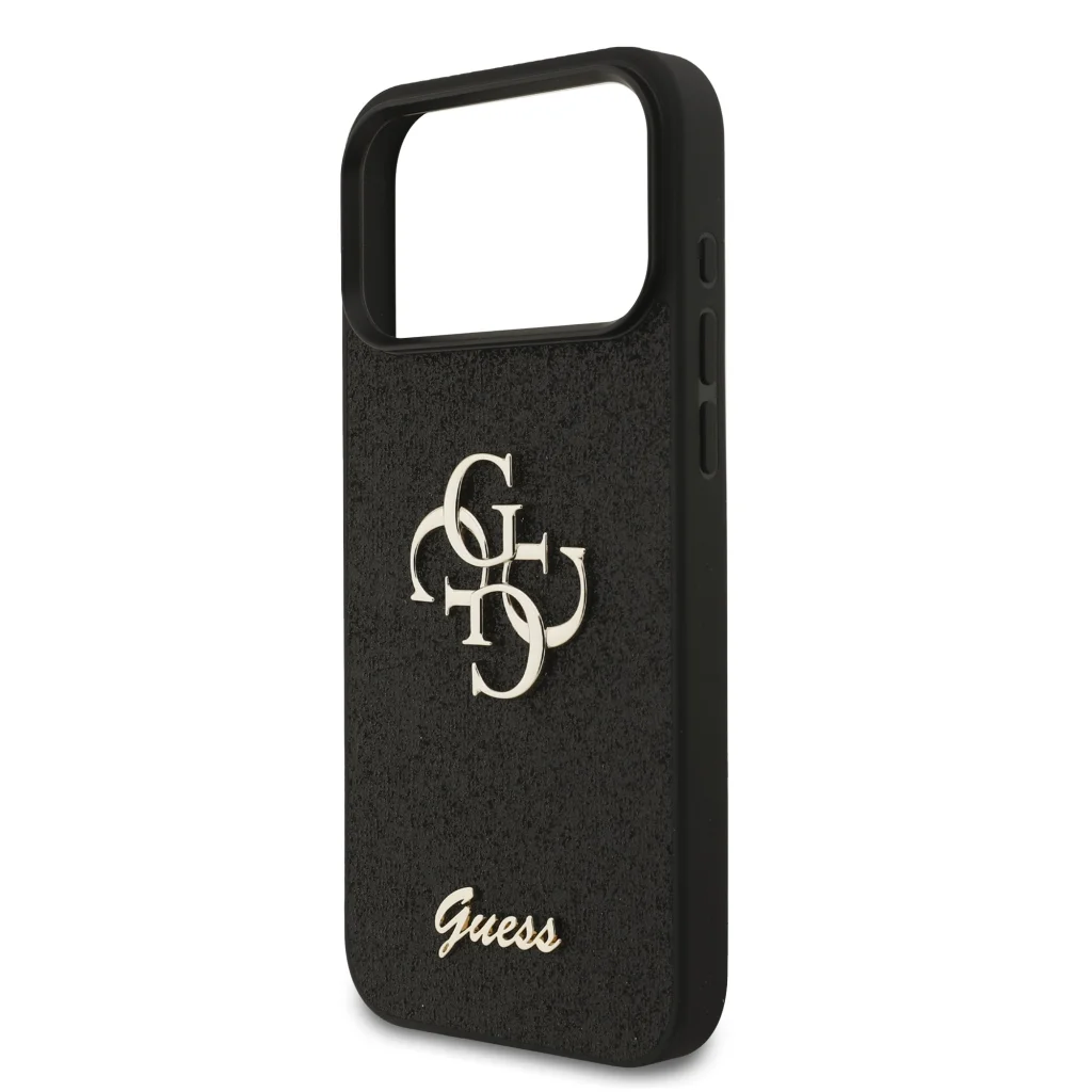 Guess PU Fix Glitter 4G Fém Logós tok iPhone 17 Pro Max Fekete tok