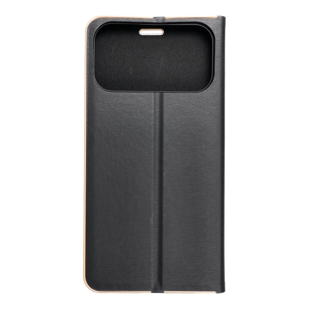 Kiemelkedő stílus és prémium védelem egyben! A LUNA Fliptok egy olyan elegáns könyvtok, amelyet kifejezetten az iPhone 17 Pro Max modellhez terveztek. A fekete, finoman textúrált külső borítás és a fényes arany fém keret tökéletes harmóniát alkot, luxus megjelenést kölcsönözve telefonjának.