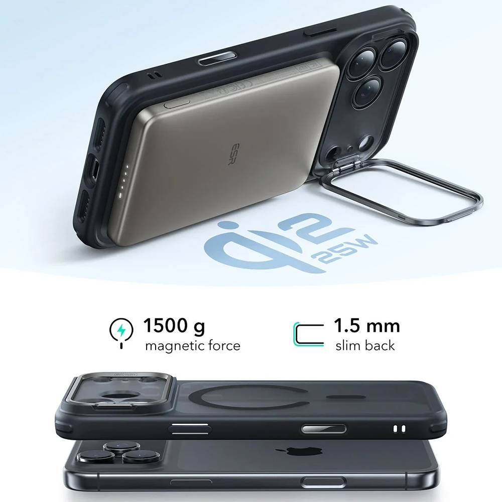 Bemutatjuk az iPhone 17 Pro Max Frosted Black ESR Classic Hybrid HaloLock Kickstand tokot