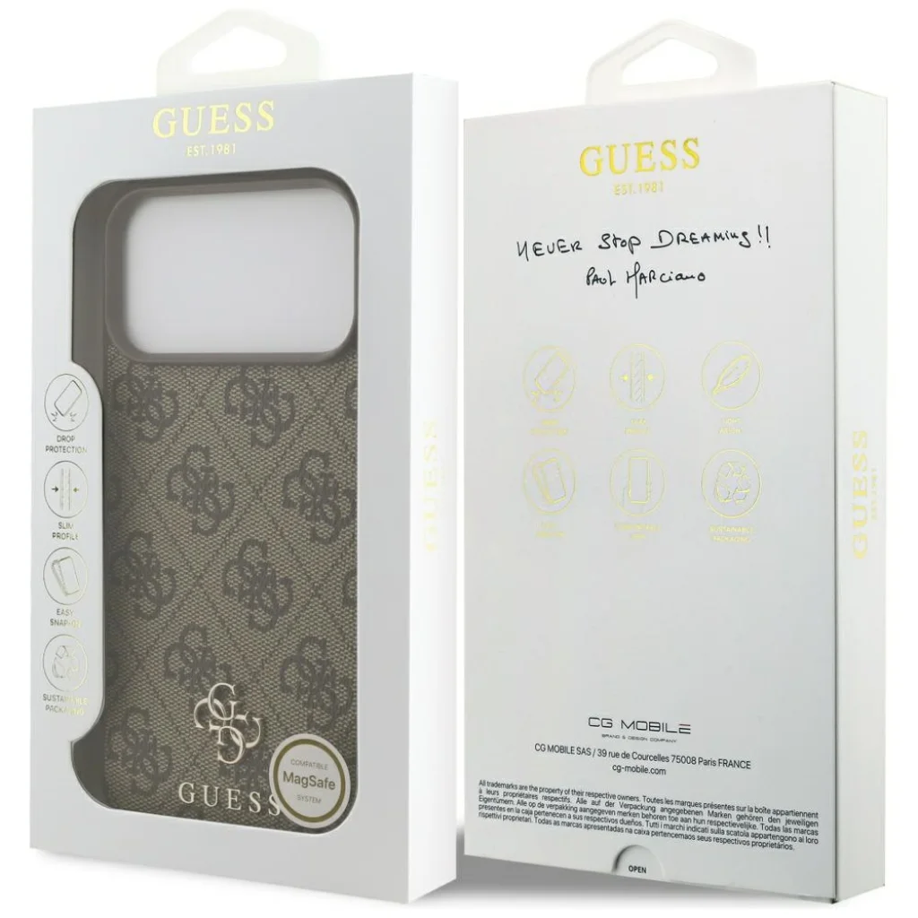 A tok egy mágneses gyűrűvel van felszerelve, amely kompatibilis a MagSafe vezeték nélküli töltővel, gyors és egyszerű töltést biztosítva. A Guess márka licencének megfelelően készült.