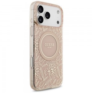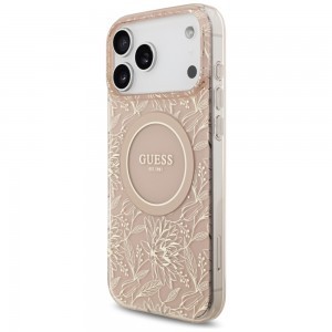 iPhone 17 Pro Max Guess IML Flowers Electro Pearl Pántos MagSafe tok Pink tok