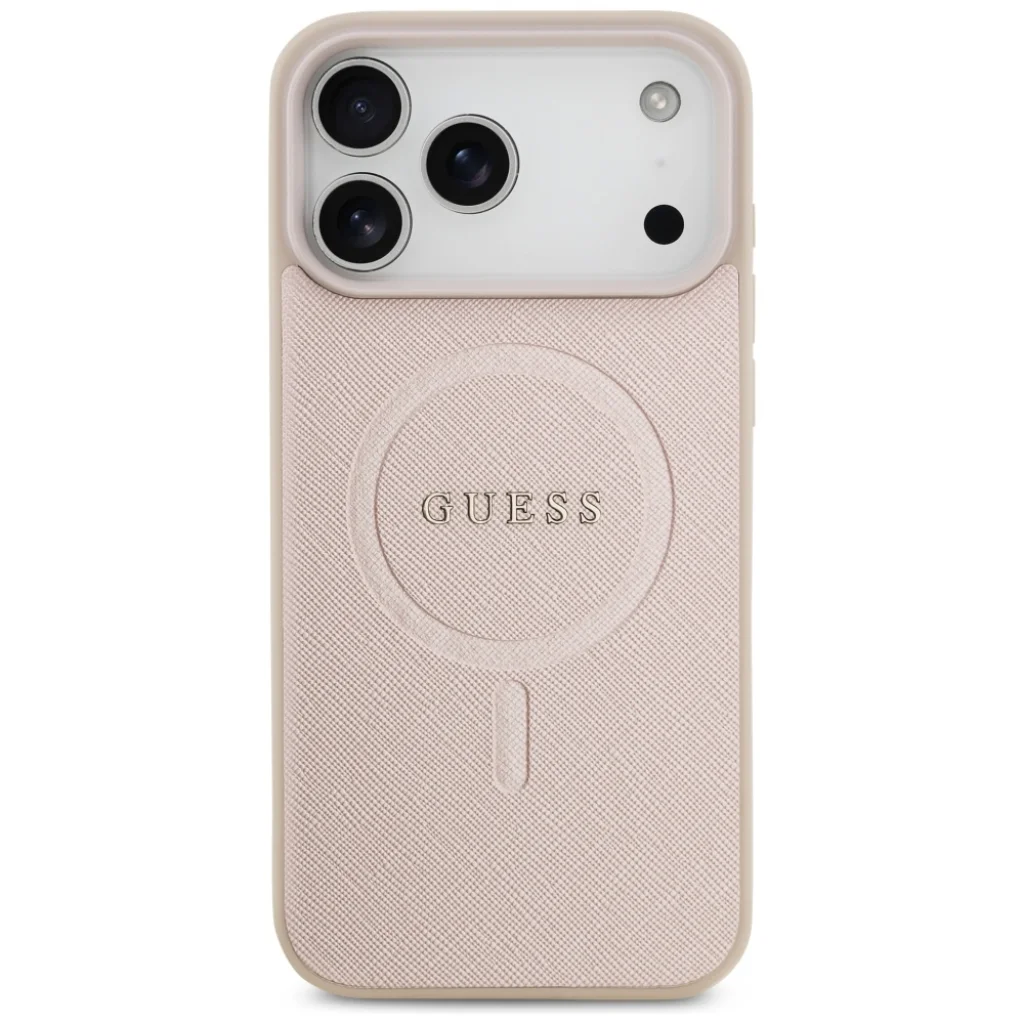 iPhone 17 Pro Max Guess Saffiano Classic Logo MagSafe tok rózsaszín