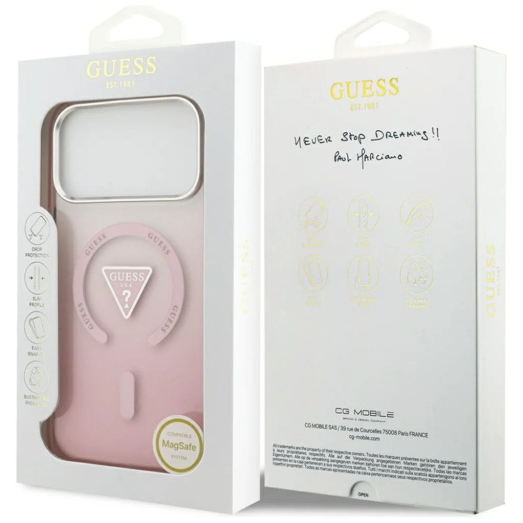 A Guess IML Színátmenetes Háromszög Logó MagSafe tok exkluzív sorozat, amely kiváló funkcionalitást egyesít egyedi, stílusos dizájnnal. Ez a kollekció azok számára készült, akik nemcsak a telefon biztonságára, hanem az elegáns megjelenésre is hangsúlyt fektetnek.