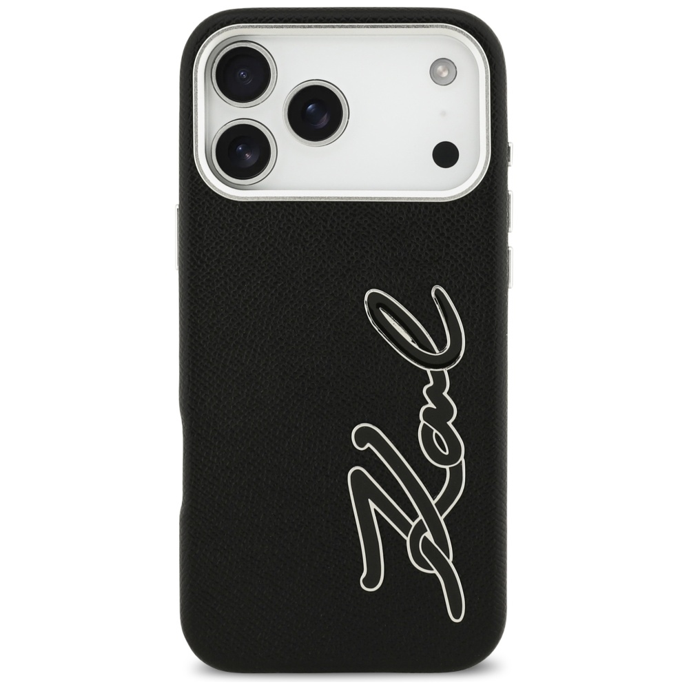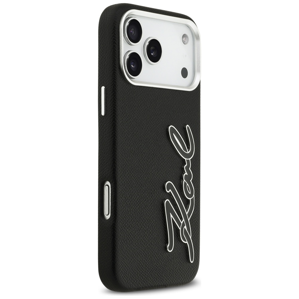 iPhone 17 Pro Max Karl Lagerfeld FW Grained Signature Logo fekete tok