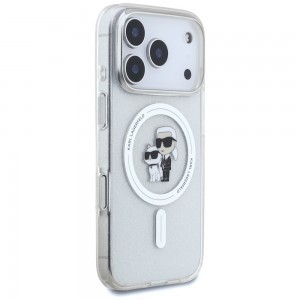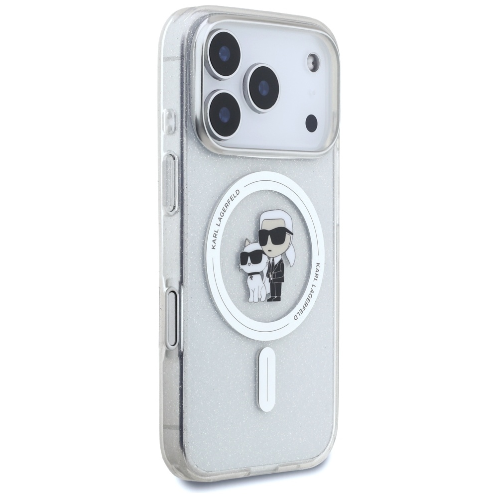 Merüljön el a Karl Lagerfeld univerzumában az ikonikus divattervező és szeretett macskája, Choupette játékos ábrázolásával. A tok átlátszó, finoman csillogó felülete elegáns és kifinomult ragyogást kölcsönöz készülékének, miközben az IML (In-Mold Labeling) technológiával készült, enyhén dombornyomott Karl és Choupette grafika kiemeli a tok egyediségét és tapintható dimenziót ad a designnak. A MagSafe gyűrűbe elegánsan integrált minta gondoskodik róla, hogy telefonja mindenhol stílusos kiegészítője legyen.