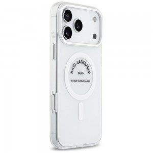 Az iPhone 17 Pro Max Karl Lagerfeld IML Karl RSG Logo MagSafe átlátszó tok a divat és a funkcionalitás tökéletes ötvözete. Kifejezetten az iPhone 17 Pro Max modellhez tervezve, ez a tok a legendás divattervező, Karl Lagerfeld kifinomult stílusát testesíti meg, miközben kiemelkedő védelmet nyújt készülékének.