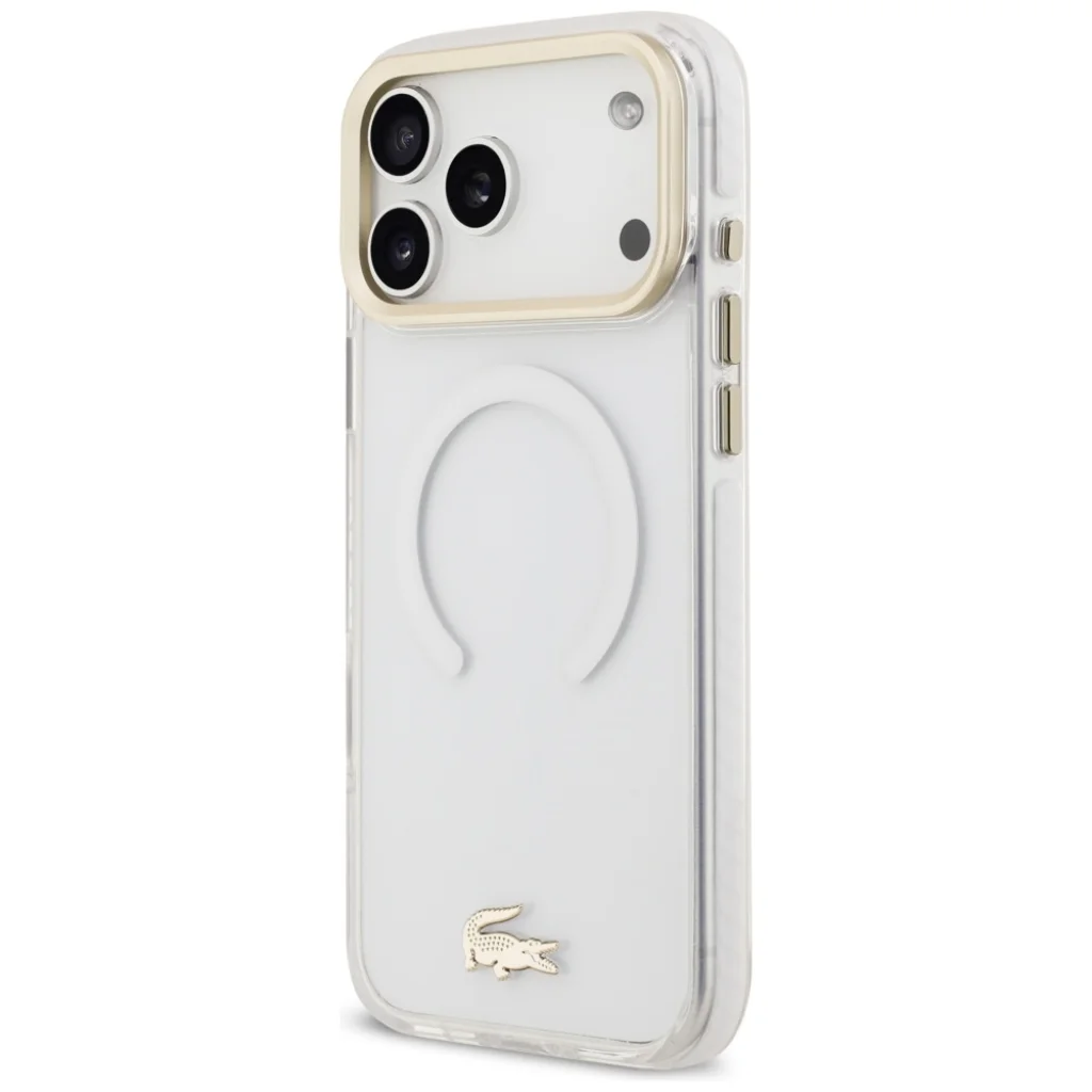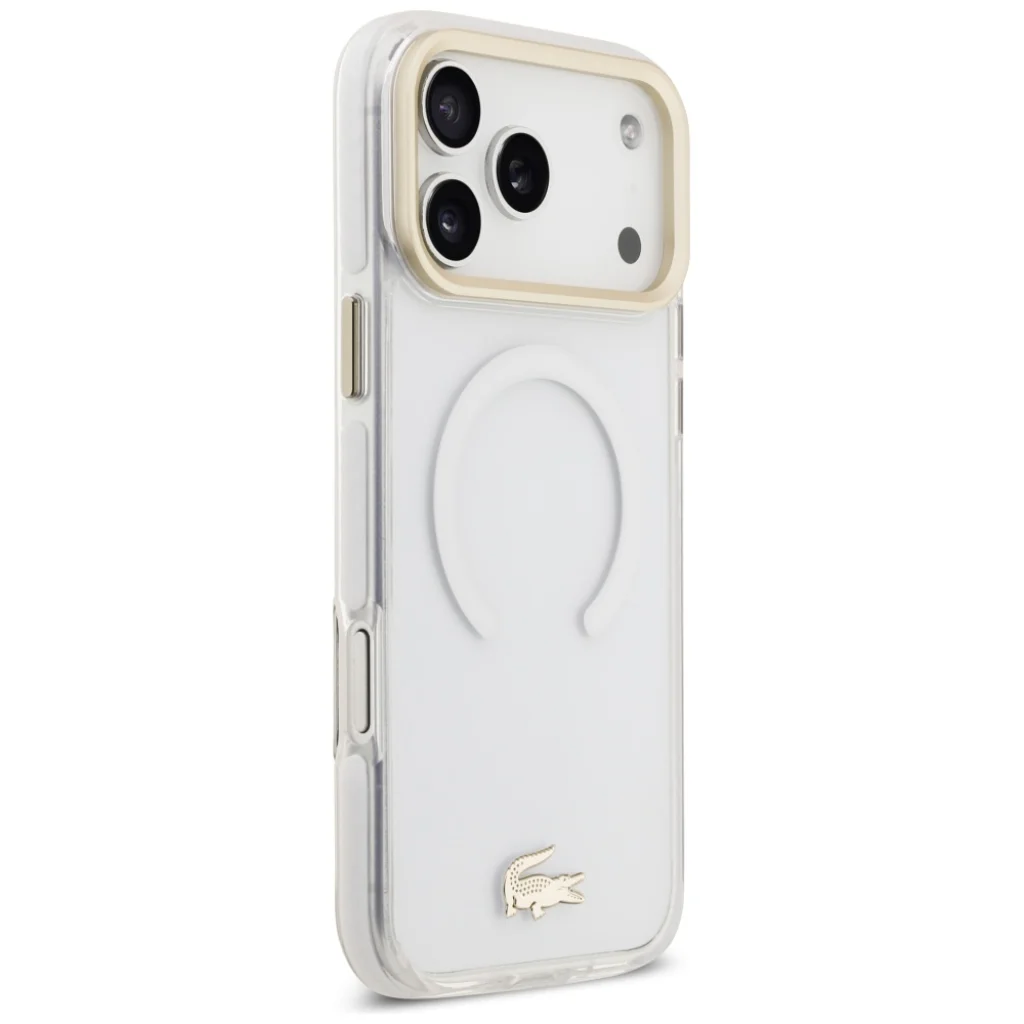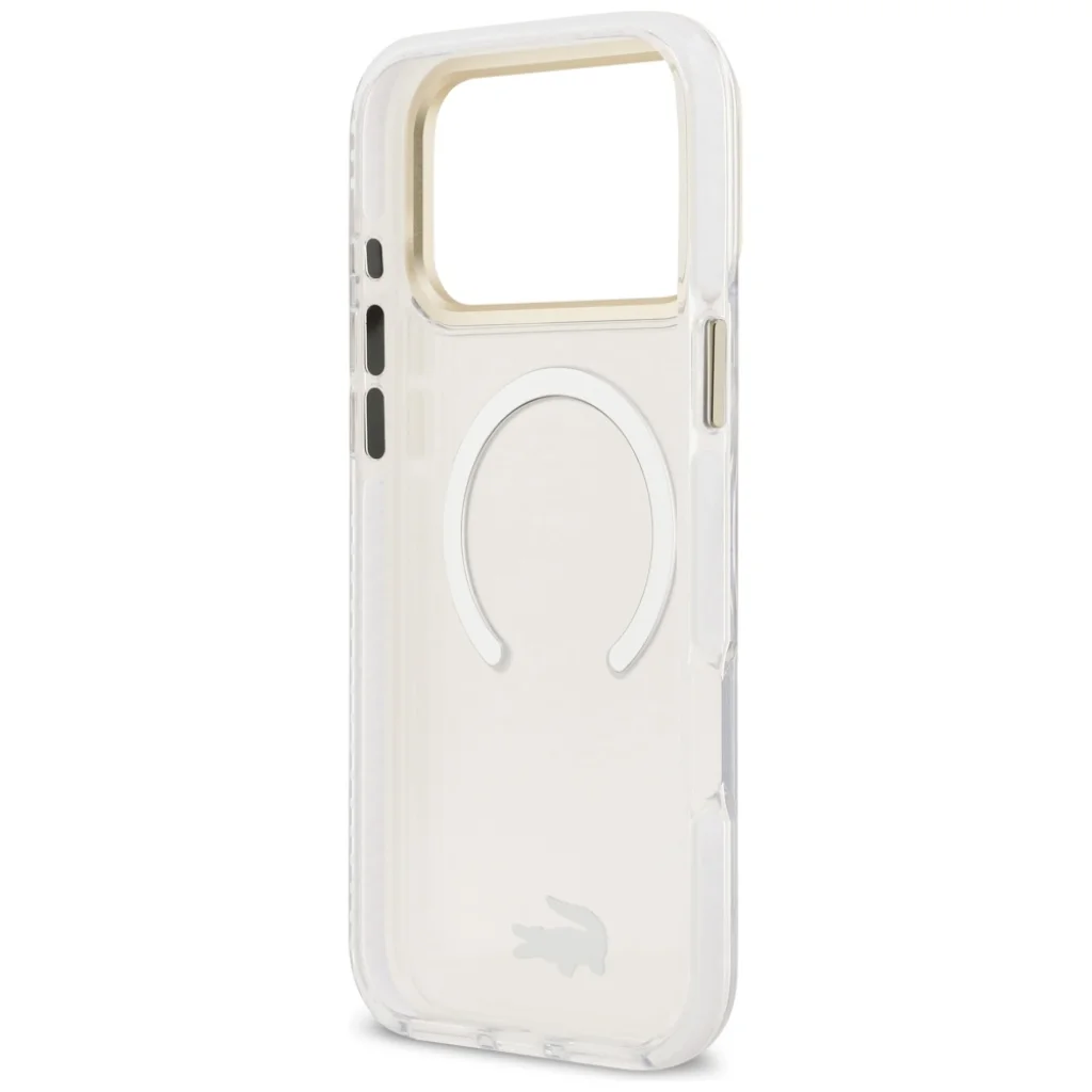 iPhone 17 Pro Max Lacoste Ütésálló Átlátszó Matt Arany Logós MagSafe Fehér tok