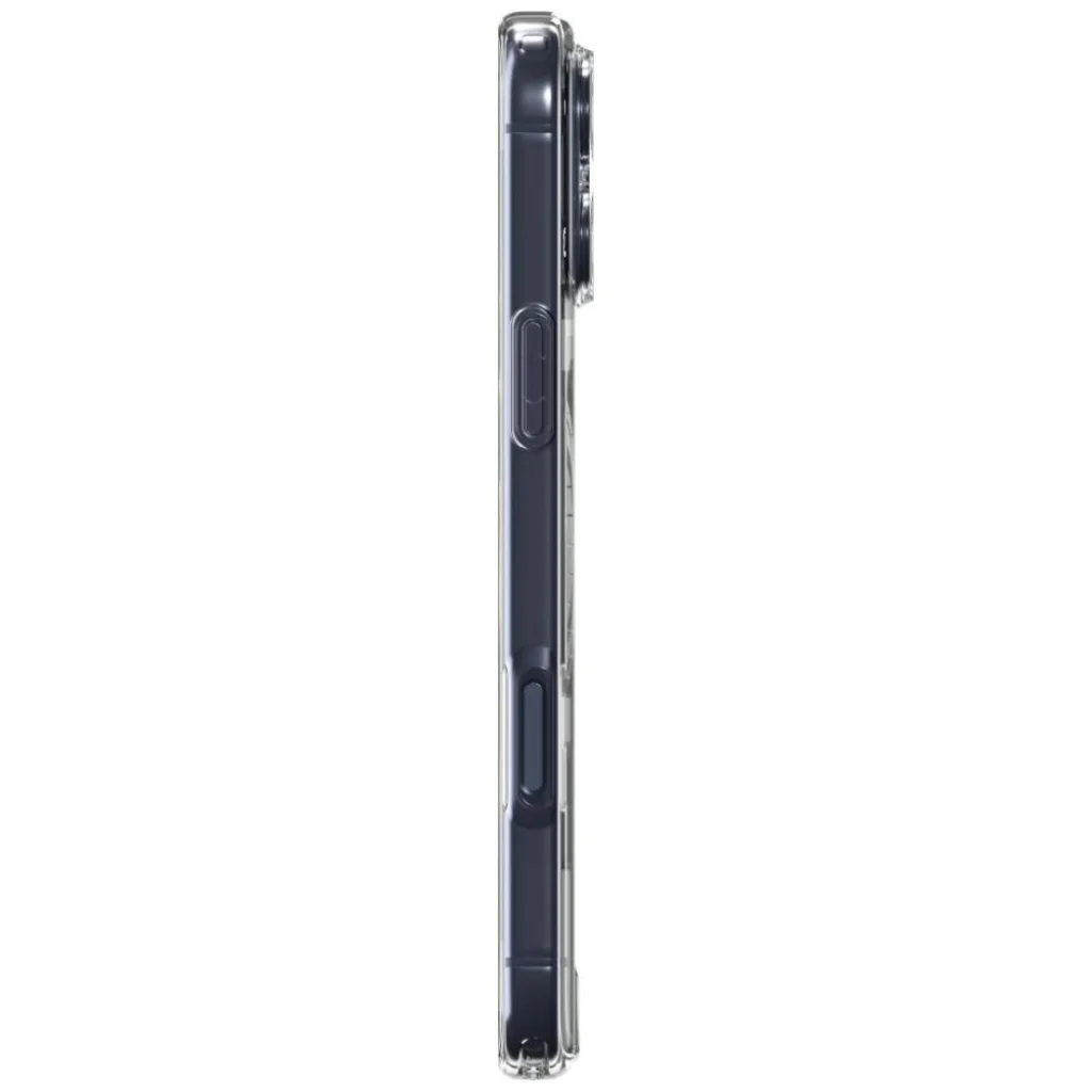 Óvja meg új iPhone 17 Pro Max készülékét a Spigen Ultra Hybrid MagSafe tokkal, amely tökéletes egyensúlyt teremt a letisztult design és a kiváló védelem között. Ez az átlátszó tok, mély kék kerettel, elegánsan kiemeli telefonja eredeti szépségét, miközben minden oldalról maximális biztonságot nyújt.