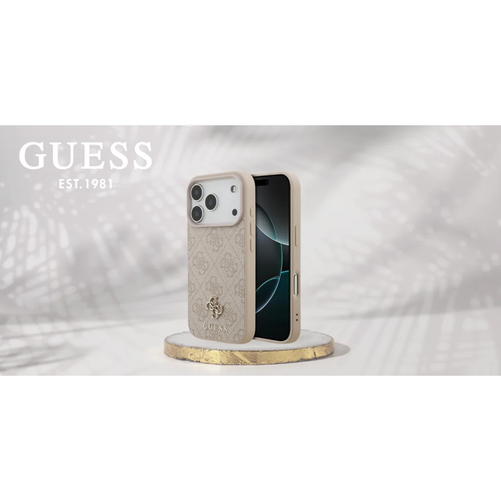Az exkluzív védőtok a neves Guess márkától az elegancia és a stílus magas szintjét biztosítja. A tok felületét a jellegzetes 4G minta díszíti. A tok alján a Guess logó és egy arany 4G címke található, amely finoman hangsúlyozza a tok presztízsét. Ez a funkcionalitás és az elegáns dizájn tökéletes kombinációja, amely nemcsak hatékonyan védi a telefonját, hanem egy divatos kiegészítővé is teszi azt.