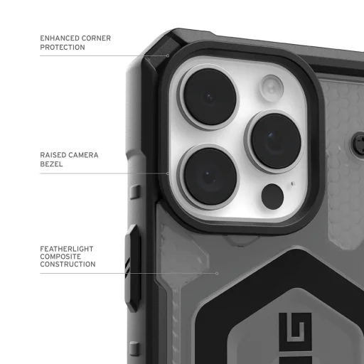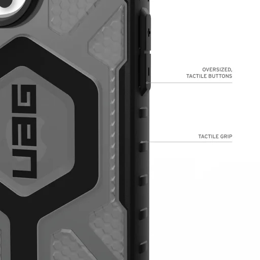 - Átlátszó és sötétszürke elemek: Az "Ash" árnyalatú, részben átlátszó kialakítás lehetővé teszi az iPhone 17 Pro eredeti szépségének megőrzését, miközben a UAG jellegzetes, masszív megjelenését is biztosítja.