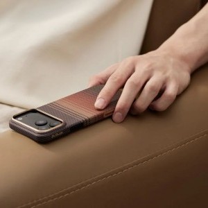 A PITAKA gondoskodott arról, hogy az Ultra-Slim tok minden részlete tökéletesen legyen kidolgozva. Precíz kivágások biztosítják a könnyű hozzáférést a gombokhoz és a portokhoz, míg a kamera körüli emelt élek megvédik a lencséket a felületekkel való érintkezéstől. Az aramid szálból készült tartós szerkezet jellegzetes szövésmintával rendelkezik, amely modern és elegáns megjelenést kölcsönöz a toknak. Ebben a kiadásban a dizájn egy különleges Naplemente · Holdkelte motívummal van díszítve, amelyet a naplementéből a holdkeltébe való átmenet inspirált, és egyedi karaktert ad a toknak. A tervezést az új márkalogó egészíti ki, amely finoman integrálva van a dizájnba. A texturált felület javítja a fogást, miközben kiemeli a prémium osztályú stílust.