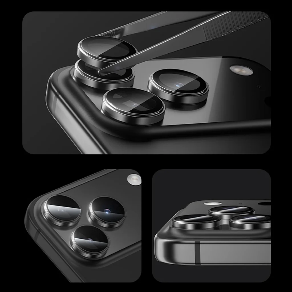 - Elegáns és masszív fém keret: Az egyedi lencsevédő gyűrűk masszív, fekete színű fém kerettel vannak ellátva, amely nemcsak extra védelmet nyújt az ütődések ellen, hanem elegáns, gyári hatású megjelenést kölcsönöz telefonjának.