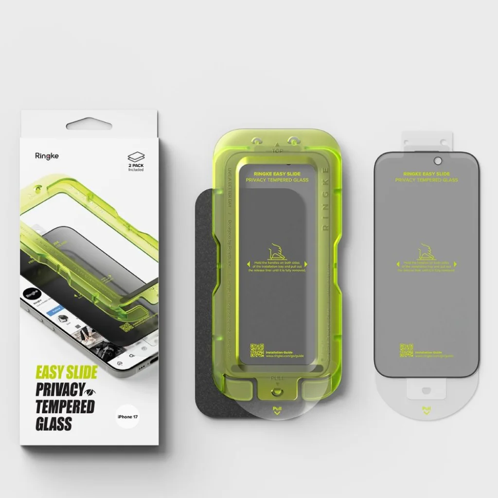 A kiváló minőségű Ringke Easy Slide edzett üveg védőfóliával ideális módja az iPhone 17 képernyőjének megóvására a sérülésektől, miközben csökkenti annak láthatóságát az idegenek számára. A polarizációs szűrő 28° szögben korlátozza, 40° szögben pedig teljesen megszünteti a képernyő láthatóságát. Az üveg 9H keménységű, ami elegendő védelmet nyújt a képernyőnek, miközben maga az üveg is ellenálló a felszíni karcolásokkal szemben. Ráadásul oleofób réteggel van bevonva, ami csökkenti az ujjlenyomatok megjelenését a képernyőn. A könnyű telepítés érdekében a csomag tartalmazza az Easy Slide szerelőeszközt, amellyel az üveg alkalmazása egyszerűbbé és pontosabbá válik. Bízzon a Ringke márkában és annak kiváló minőségében! Az üveg csak és kizárólag a lapos részre van szabva, a telefon modelljének gyártója által készített vágósablon alapján. A védőüveg telepítése után a képernyő körül finom légies aura jelenhet meg, ami természetes, és az eszköztől függ.