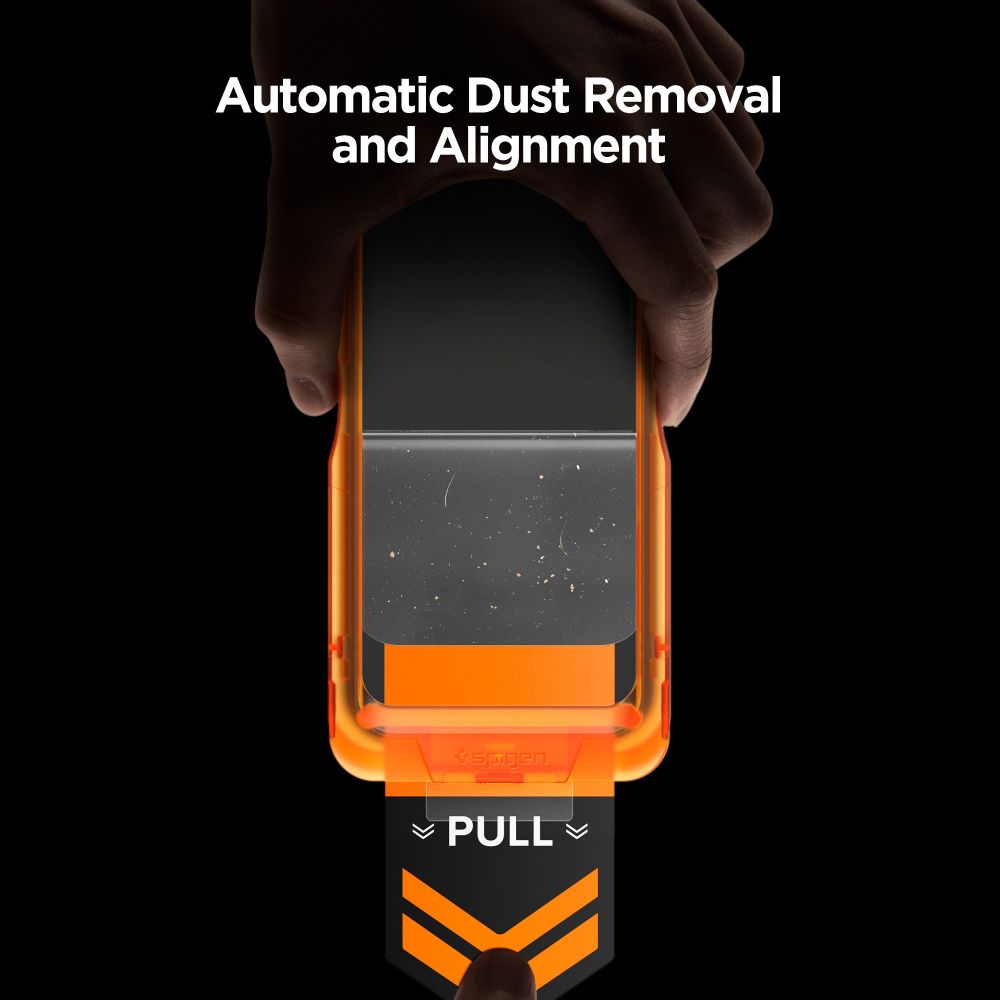 • Egyetlen „PULL” mozdulattal távolítsd el a portalanító filmet, miközben az üvegfólia pontosan illeszkedik a kijelzőre. Ez a funkció az automatikus portalanítást is elvégzi, minimalizálva a buborékképződést.
