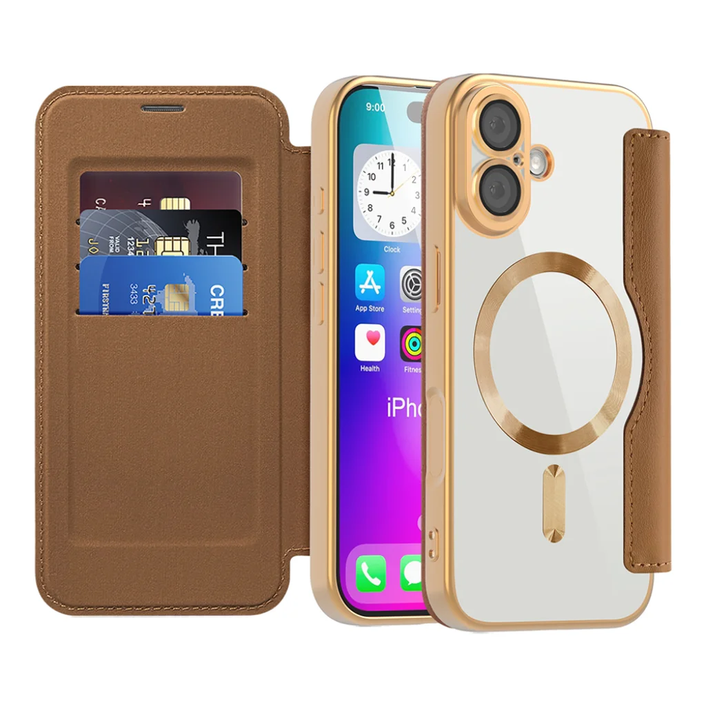 A Techsuit SmartMag Book tok a klasszikus könyvtok kifinomultságát ötvözi a modern védelmi funkciókkal. A prémium minőségű PU bőr borítás puha tapintású és tartós, míg az átlátszó hátlap lehetővé teszi, hogy az iPhone 17 eredeti szépsége továbbra is érvényesüljön. Az arany színű elektrokrényezett keret és a kamera gyűrű nemcsak extra védelmet nyújt a készülék legérzékenyebb részeinek, hanem egyedi, luxus megjelenést is kölcsönöz.