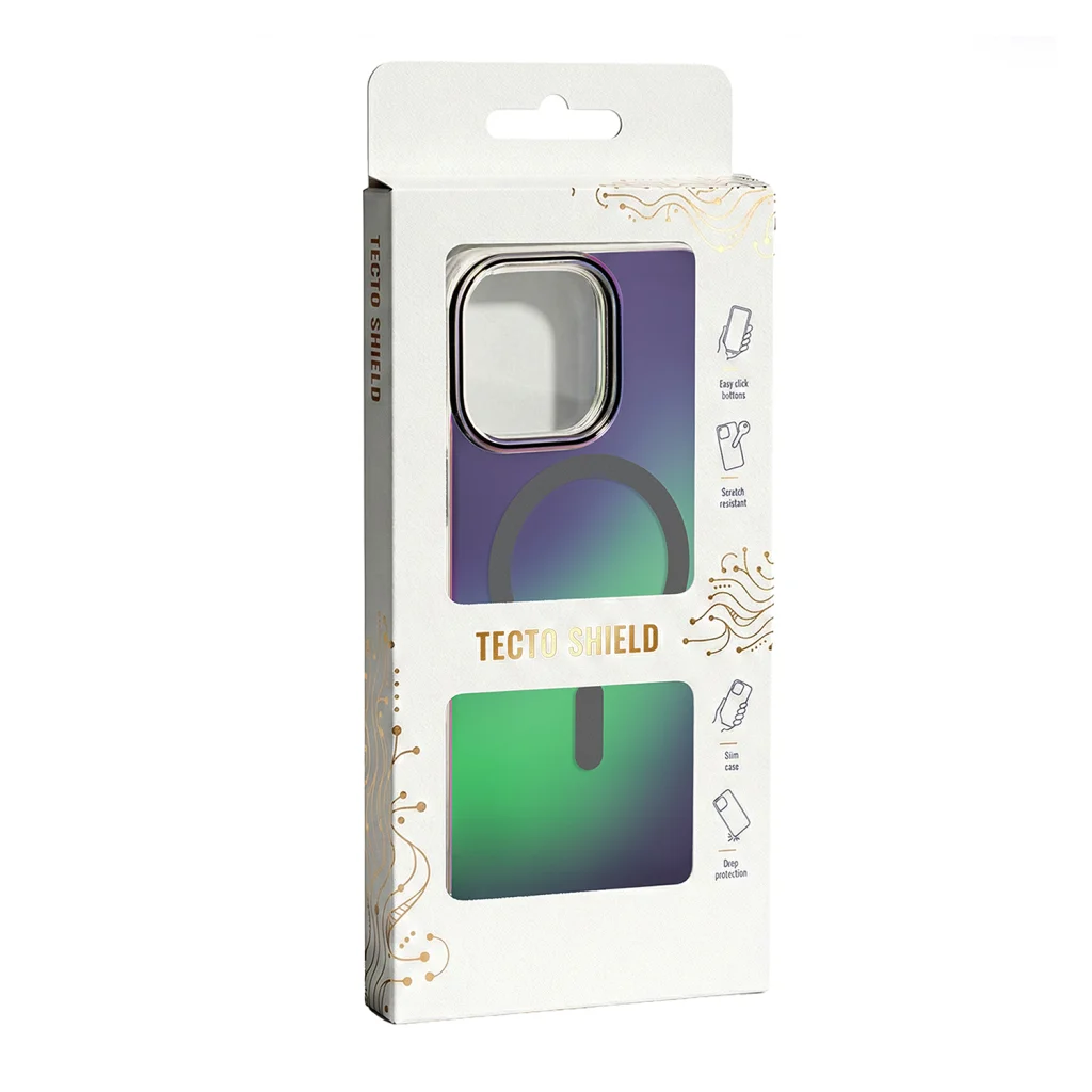 Elegáns csomagolás. Minden Tecto Shield tok esztétikus, jól megtervezett csomagolásban kerül forgalomba, minimalista, fehér dizájnnal, amely megkülönböztető réz grafikai elemeket tartalmaz. A doboz eleje praktikus bemutató ablakkal rendelkezik, amely lehetővé teszi a borító színének és felületének megtekintését a csomagolás kinyitása előtt. Az átgondolt konstrukció fokozza a termék bemutatásának vonzerejét.