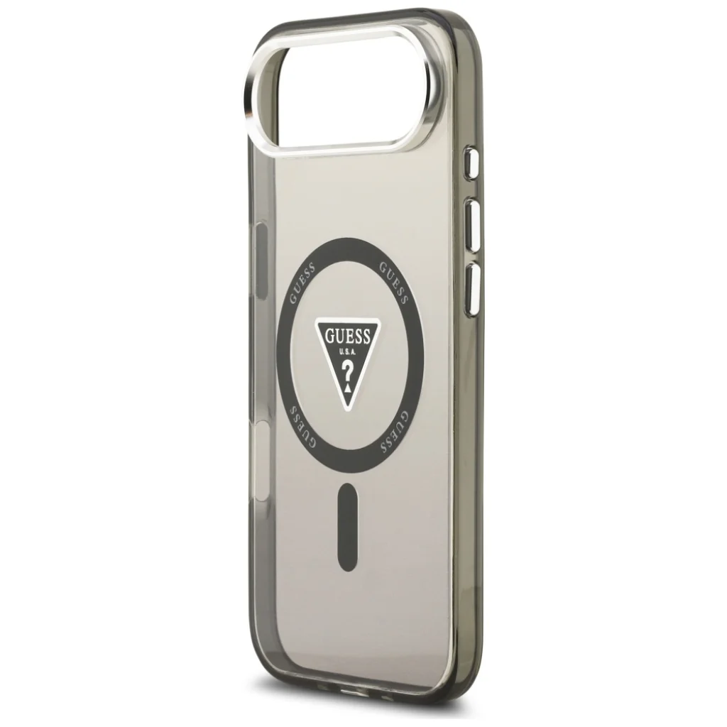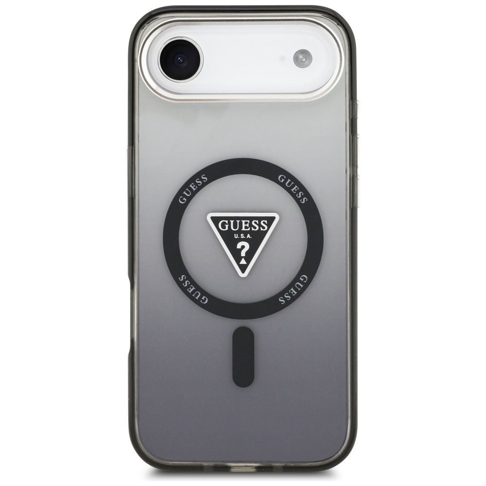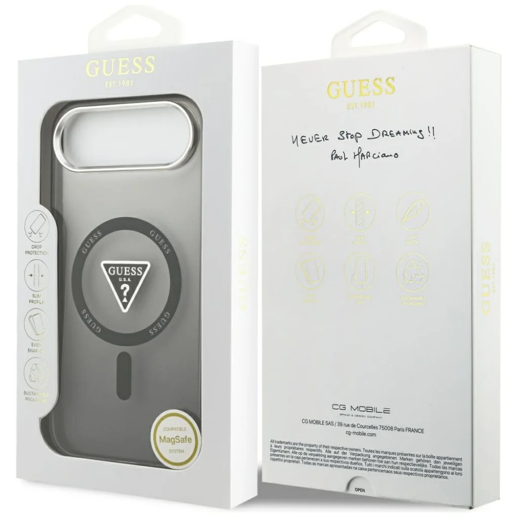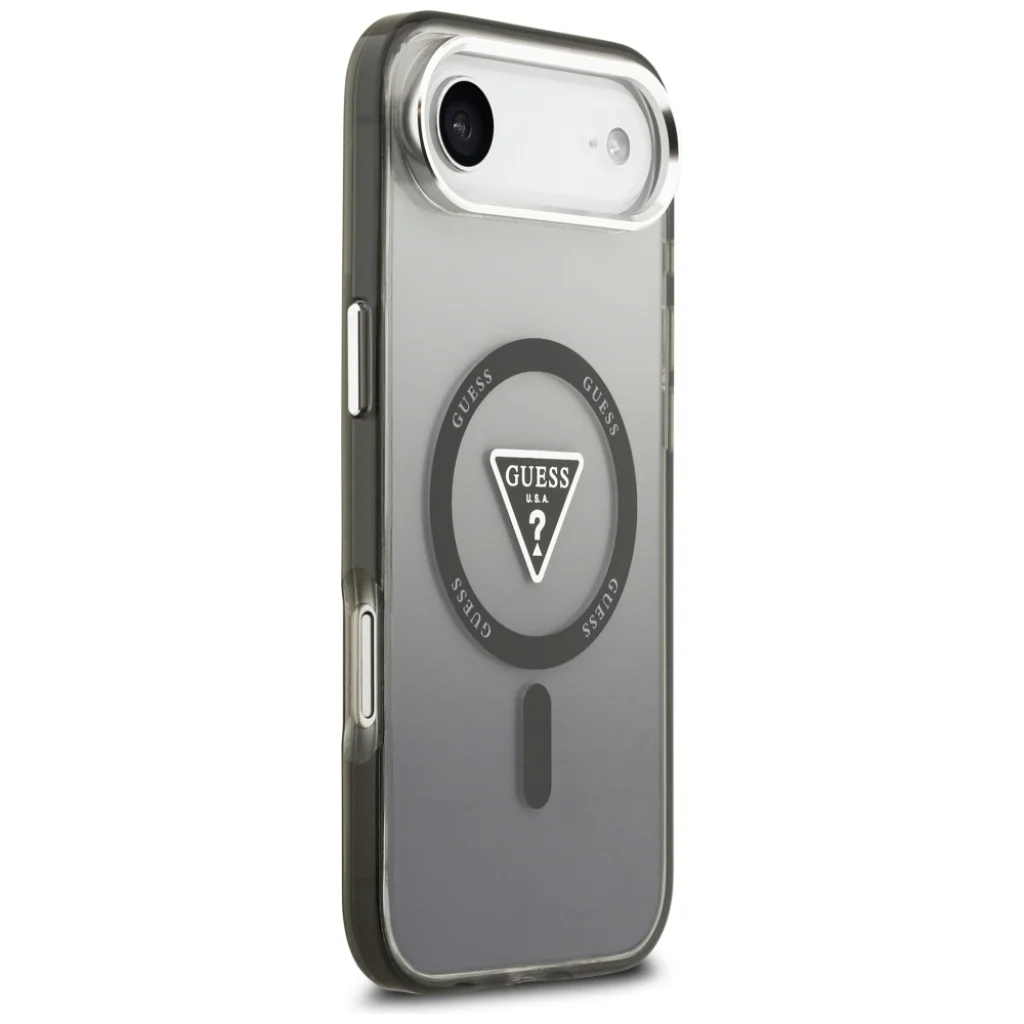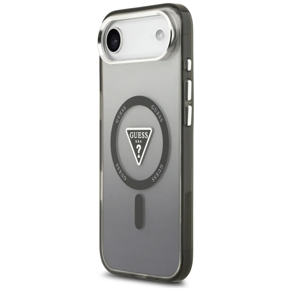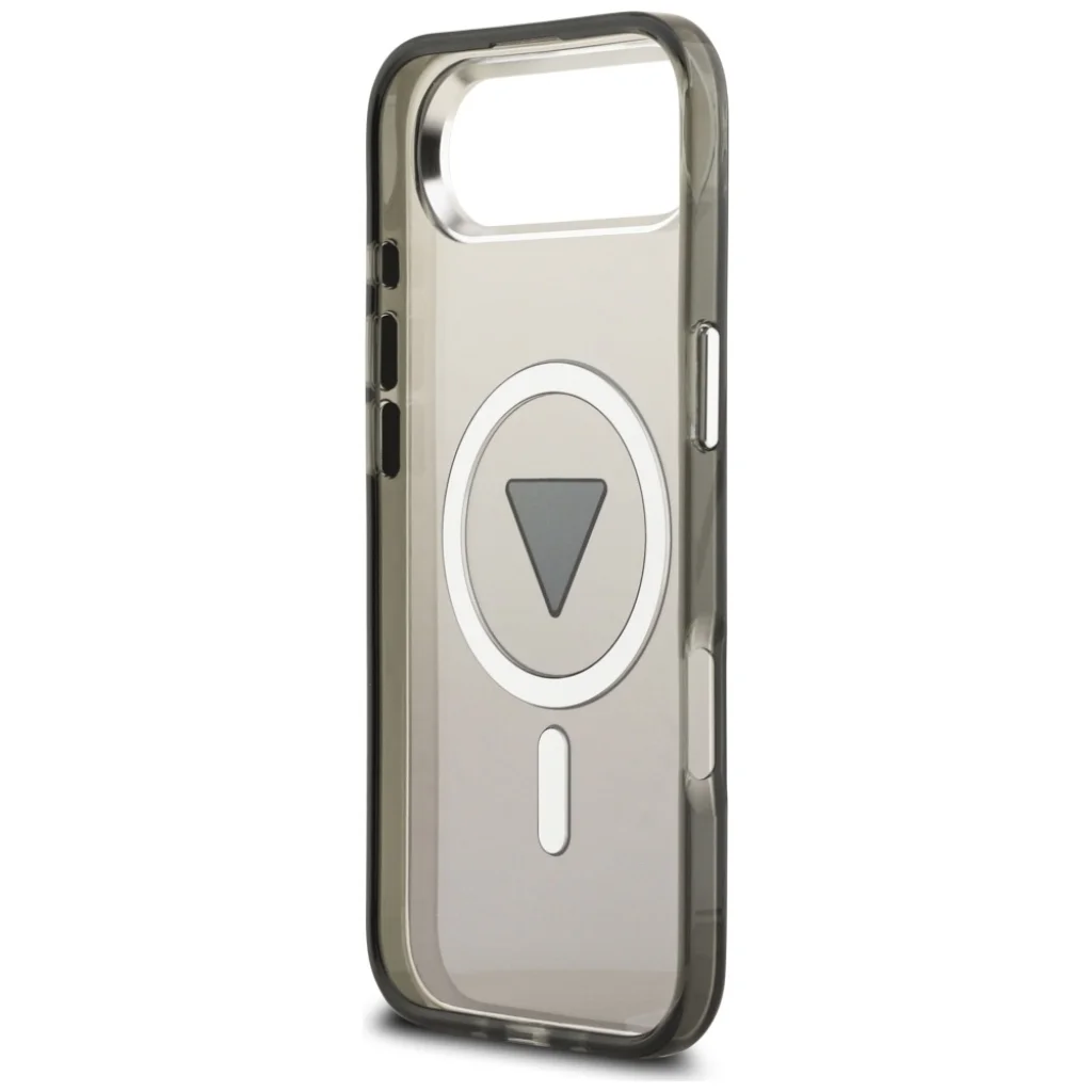 Az IML Átmenetes Háromszög Logó MagSafe a Guess márka exkluzív védőtokja, amely kiemelkedő funkcionalitást és stílusos, egyedi dizájnt ötvöz. Kiváló minőségű PC és TPU anyagokból készült, és modern karaktert kölcsönöz neki az IML Átmenetes technológia. A középső részen található Guess logó kiemeli a kollekció presztízsét. Alumínium gombokkal és kamera kerettel rendelkezik, amely tartósságot és elegáns megjelenést biztosít. A tok pontosan illeszkedik, hatékonyan elnyeli az ütéseket, és fenntartja a teljes hozzáférést a portokhoz és gombokhoz. A kissé megemelt szélek védik a telefon kijelzőjét és a kamerát a sérülésektől. A tok MagSafe kompatibilis, amely gyors és egyszerű vezeték nélküli töltést tesz lehetővé. A Guess márkájú licenc alapján készült.