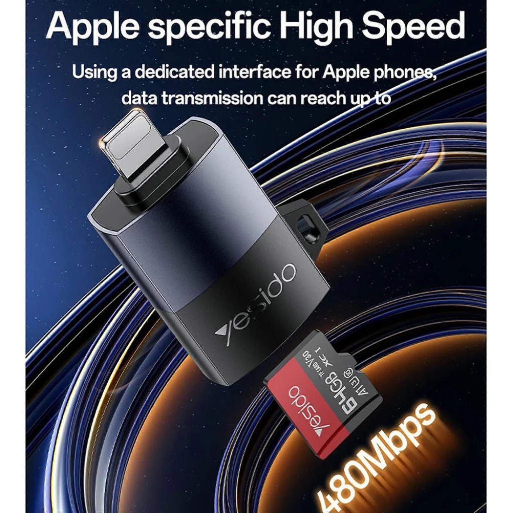 iPhone, iPad Yesido adapter (GS38) – lightning TF kártyaolvasó