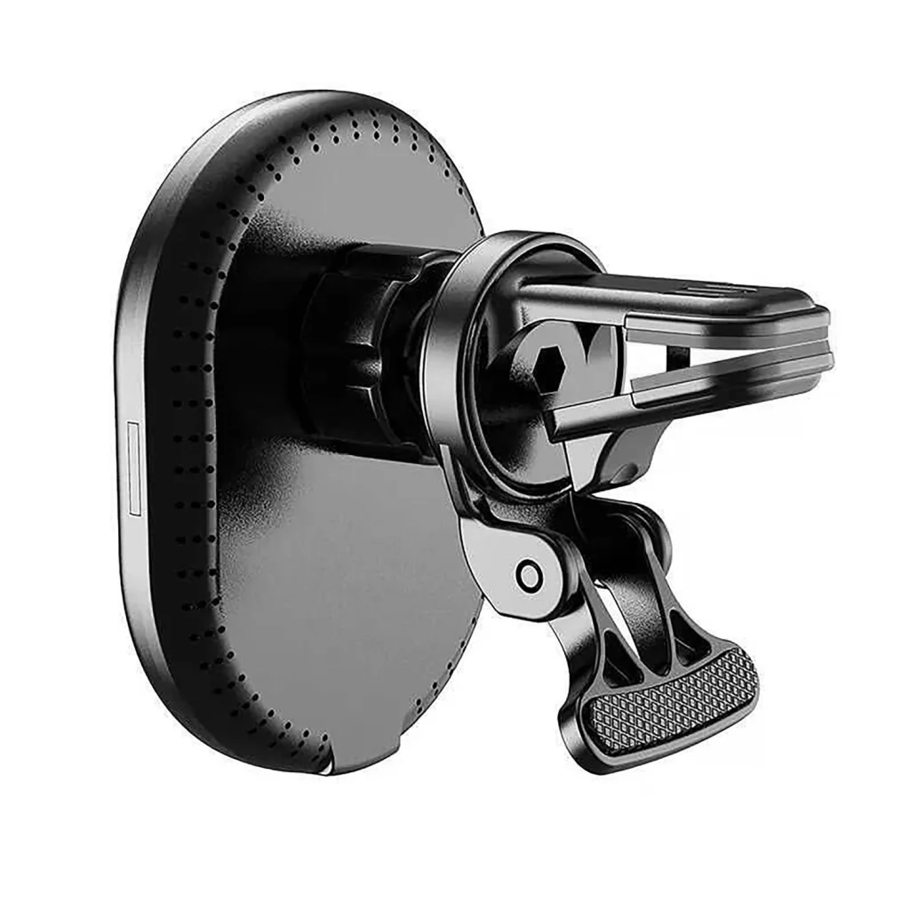 A Setty mágneses autós tartó MagSafe vezeték nélküli töltéssel modern és kényelmes megoldás iPhone felhasználók számára, akik kompatibilisek a MagSafe technológiával. Az erős mágneses rögzítés gyors, intuitív telefoncsatlakoztatást biztosít, és stabil tartást garantál még dinamikus vezetés közben is. A beépített vezeték nélküli töltési funkció akár 5 W-ig kényelmes energiapótlást tesz lehetővé kábelek nélkül. A tartó az autó légbefúvó rácsához egy masszív klipsszel rögzíthető, biztonságos elhelyezést és egyszerű eltávolítást garantálva. A vékony, fényes kialakítás finom LED háttérvilágítással elegáns, modern jelleget kölcsönöz a terméknek. Akár 6 mm-es töltési távolsággal és 78%-os hatékonysággal a készülék stabil és hatékony működést biztosít. USB-C porton keresztül üzemeltethető, és egy méteres USB-C/USB-C kábel is tartozik hozzá, a Setty tartó az esztétikumot a funkcionalitással ötvözi — ideális választás a minimalizmust, kényelmet és MagSafe technológiát kedvelő sofőrök számára.