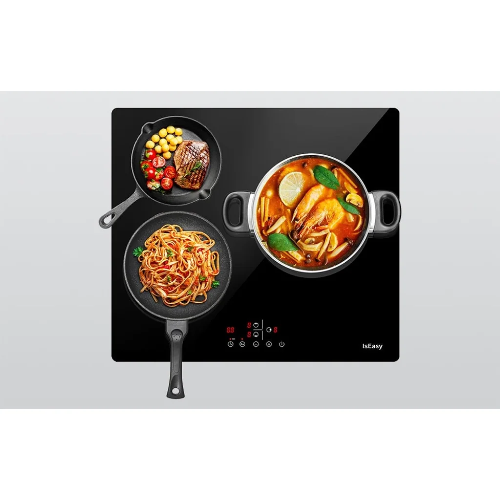 Az IsEasy LT3-22 egy modern, 5500 wattos kerámia főzőlap, amelyet a mindennapi főzéshez terveztek kényelmes és biztonságos módon. A három hatékony fűtési zóna, a 0 és 9 közötti széles teljesítménybeállítási tartomány és a praktikus, akár 99 perces időzítő lehetővé teszi a gyors ételek és az igényesebb ételek elkészítését egyaránt. Ez a robusztus készülék minden konyhába illik.