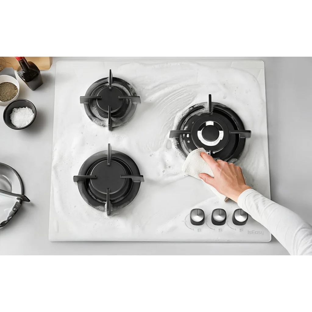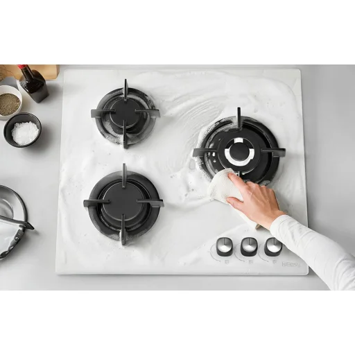 Az IsEasy MGBG-603 gázfőzőlap üvegpanele nemcsak elegáns, hanem a mindennapi használatban is nagyon praktikus. Sima felületének köszönhetően a főzőlap könnyen tisztán tartható. Egyszerűen törölje le nedves ruhával, hogy eltávolítsa az ételmaradékokat, zsírt és szennyeződéseket, így gyorsan és könnyedén tisztán tarthatja konyháját.
