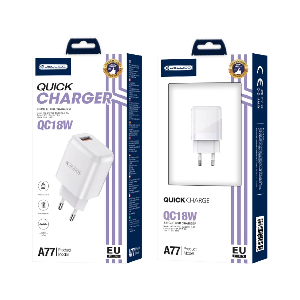 A Jellico A77 hálózati töltő adapter a tökéletes választás, ha gyors és megbízható energiát keres mobileszközei számára. Ez a kompakt, elegáns fehér töltő 18W teljesítménnyel és Quick Charge 3.0 (QC3.0) technológiával biztosítja, hogy készülékei pillanatok alatt feltöltődjenek, minimalizálva a várakozási időt. Legyen szó okostelefonról, tabletről vagy más USB-n keresztül tölthető eszközről, a Jellico A77 adapter garantálja a hatékony és biztonságos töltést.