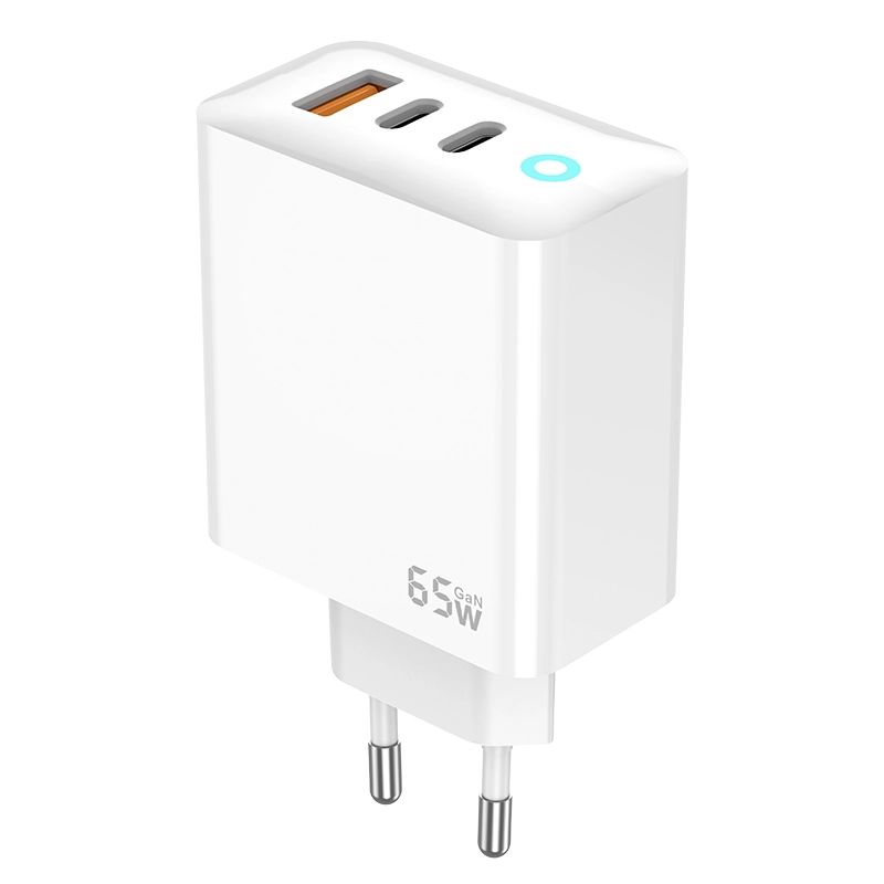 JELLICO hálózati töltő EU20 GaN PD 65W 2xUSB-C + 1xUSB QC3.0 fehér