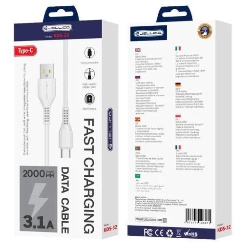 JELLICO kábel KDS-32 USB-C USB 3.1A 2M Fehér