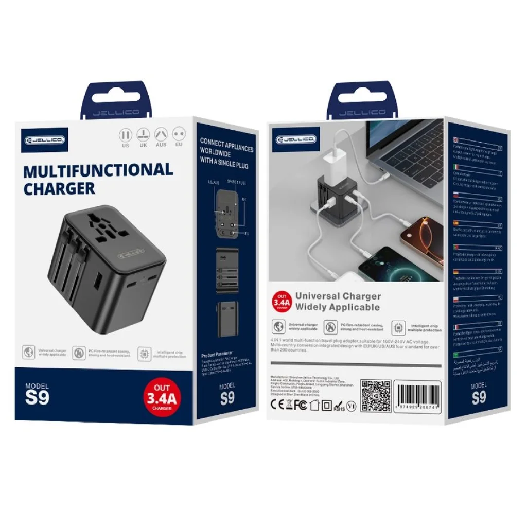 Válassza a JELLICO univerzális utazó adaptert S9 PD Fekete, és élvezze a gondtalan, biztonságos és hatékony töltést a világ bármely pontján!